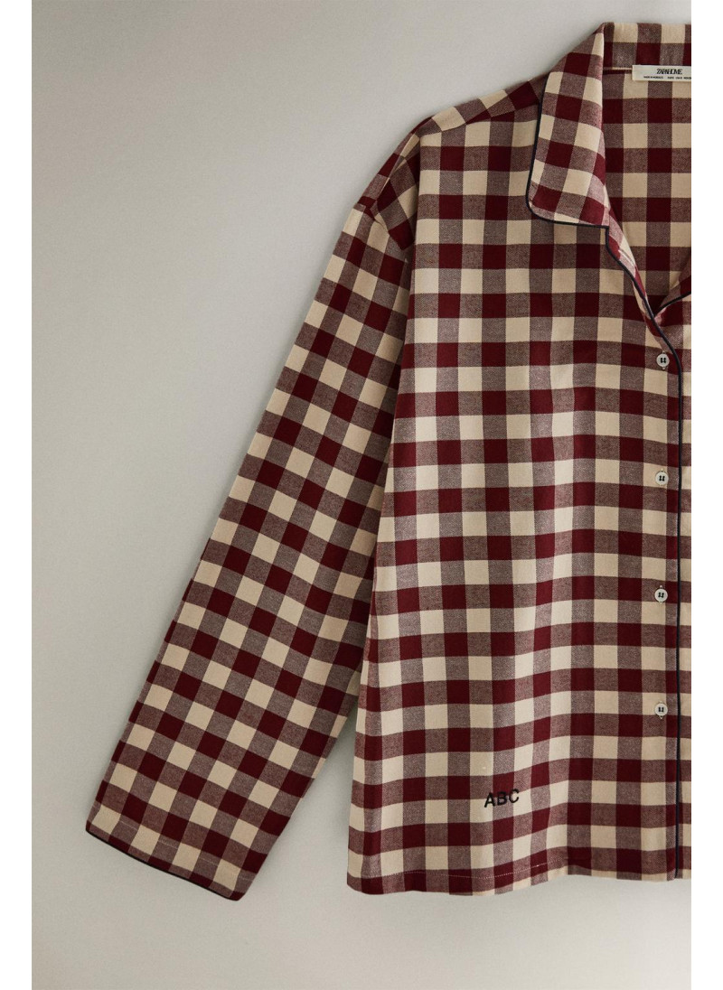 Рождественская рубашка с длинным рукавом, изготовленная из 100% хлопка с дизайном в клетку. Воротник лацкан и застежка на пуговицы.