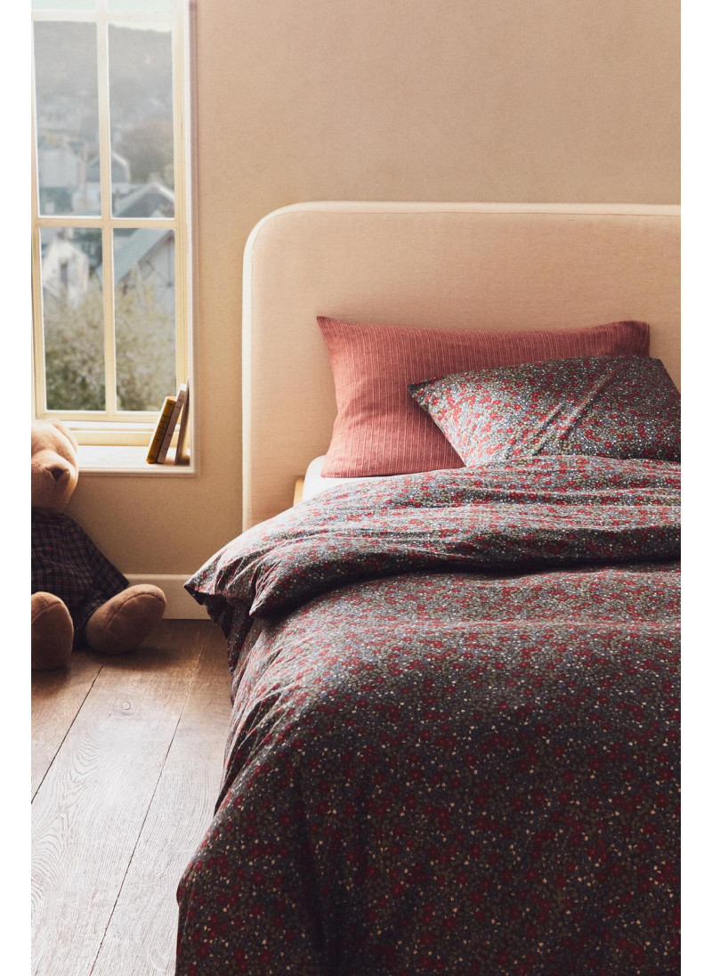 Детское рождественское покрывало из хлопка с плотностью 200 нитей с цветочным принтом на рождество, представлено в нескольких цветах. Застегивается снизу с помощью скрытых пуговиц.