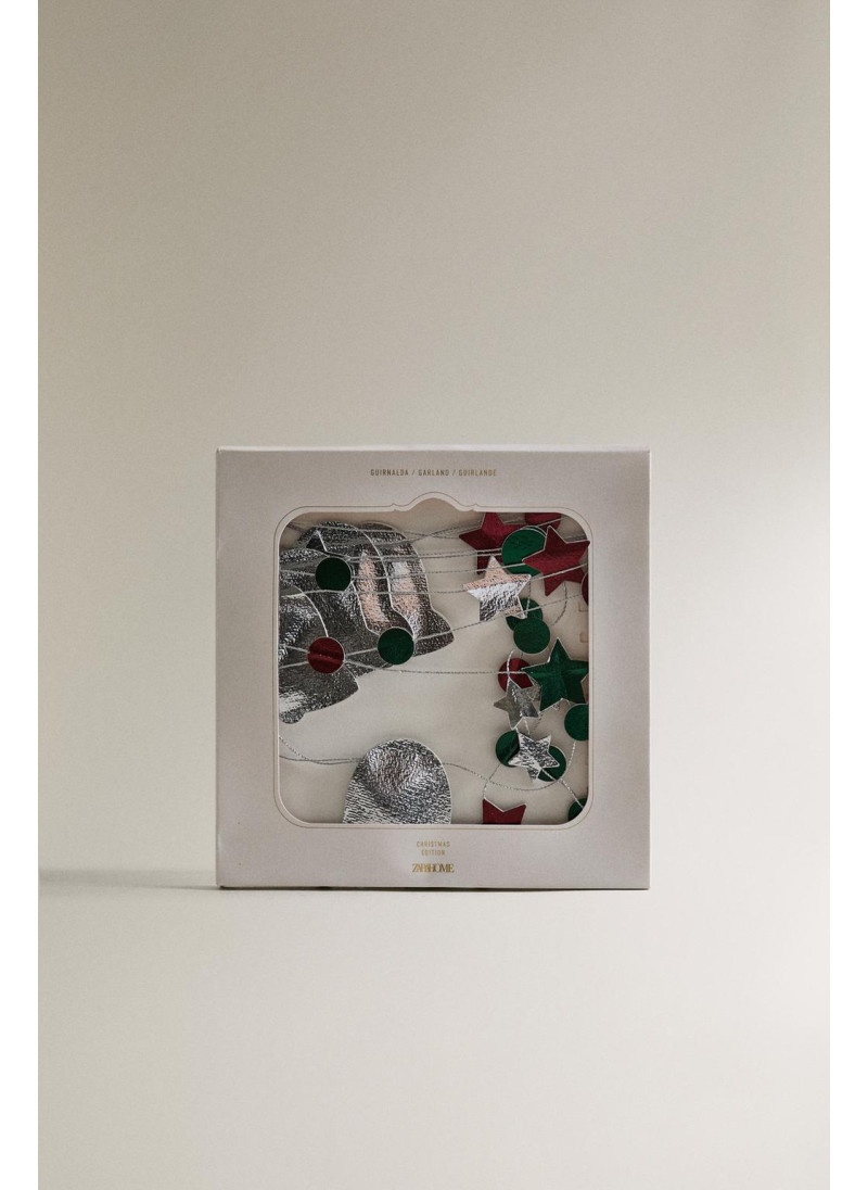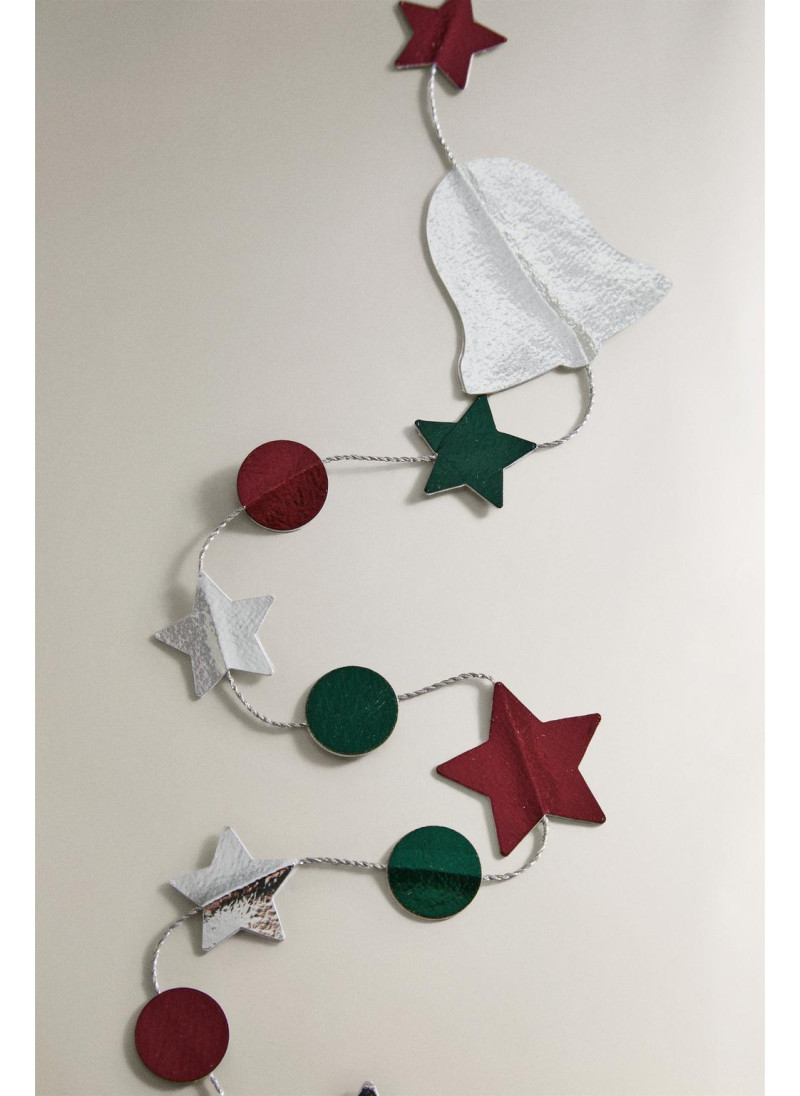 Декоративная рождественская гирлянда из металлической бумаги в виде колоколов и звезд...