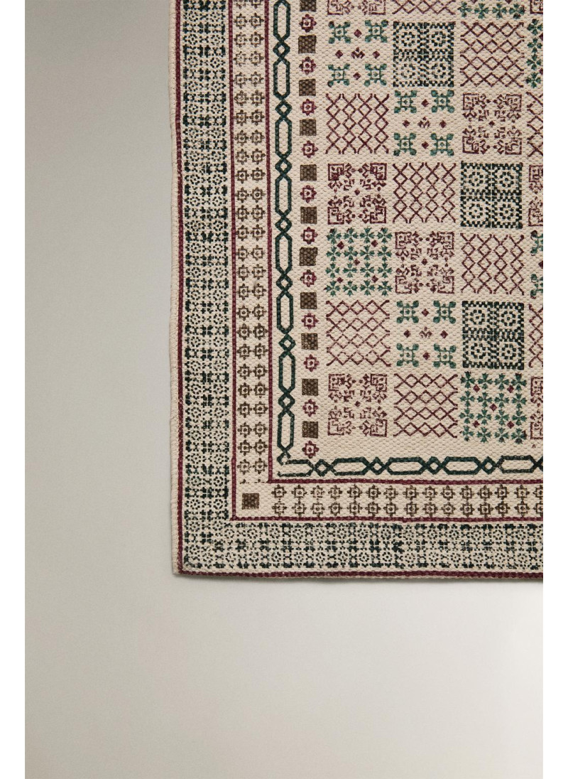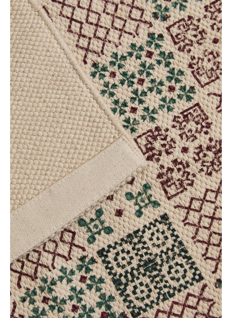 Хлопковый рождественский коврик с цветочным тиснением, окруженный полосами и контрастными принтами. Доступен в размере ковра-раннера.