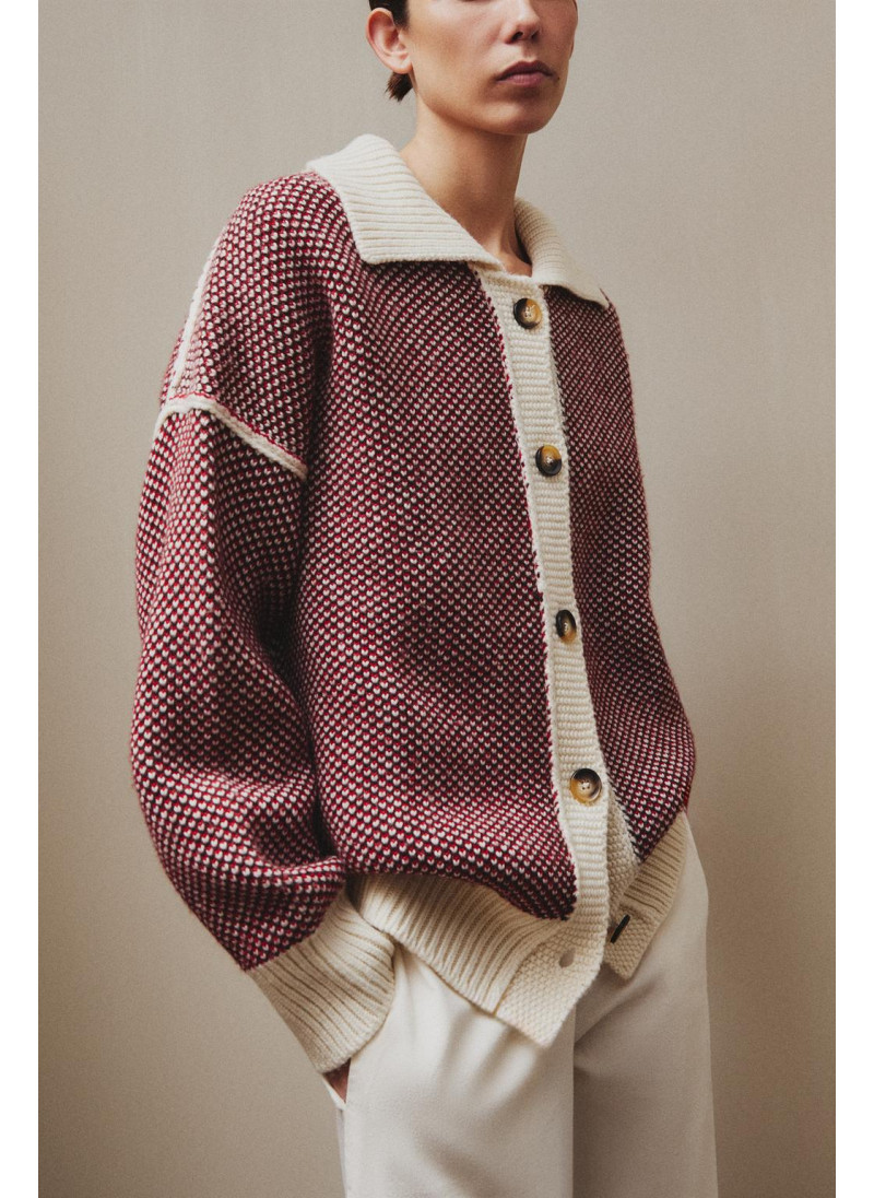 Рождественский кардиган с длинным рукавом, изготовленный из 100% шерсти с лацканами и застежкой на пуговицы.