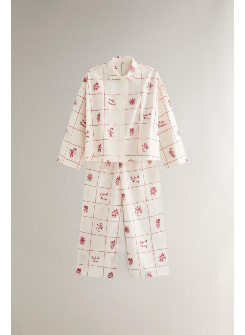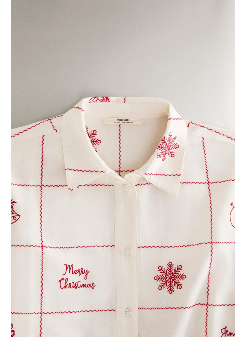 Рождественская рубашка с длинным рукавом из смесового хлопка и льна в клетчатом дизайне с вышивкой. Воротник лацкан и застежка на пуговицы.