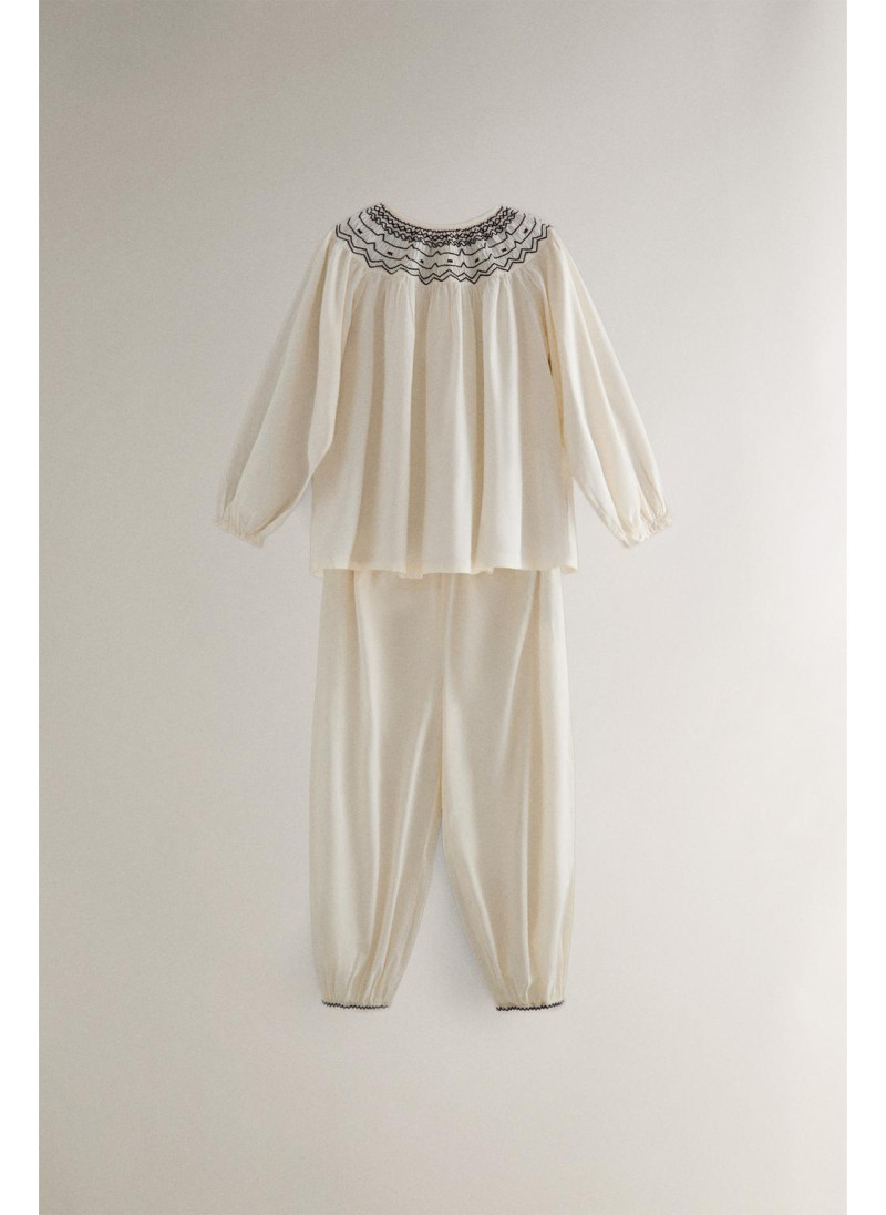 Рождественские хлопковые пижамные брюки с вышивкой на поясе и подоле.