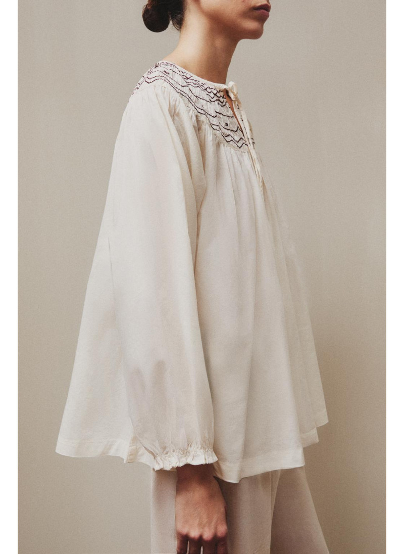Хлопковая длиннорукавная пижамная рубашка на Рождество с сборкой и нашивкой в верхней части и регулируемыми шнурками на шее.