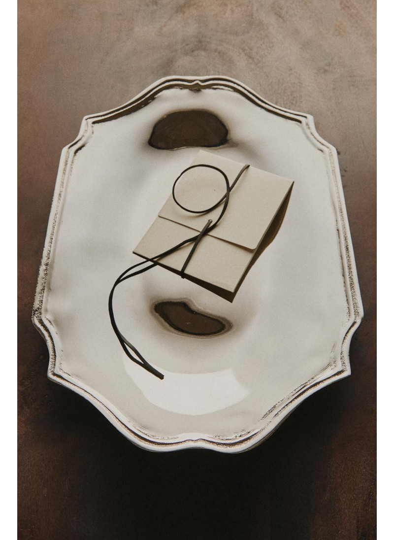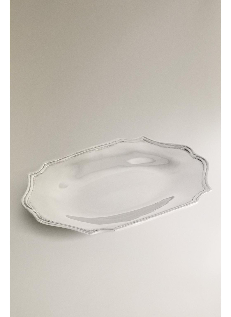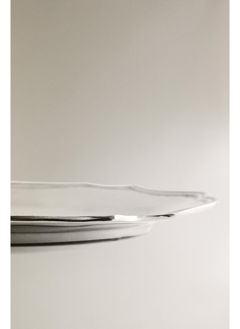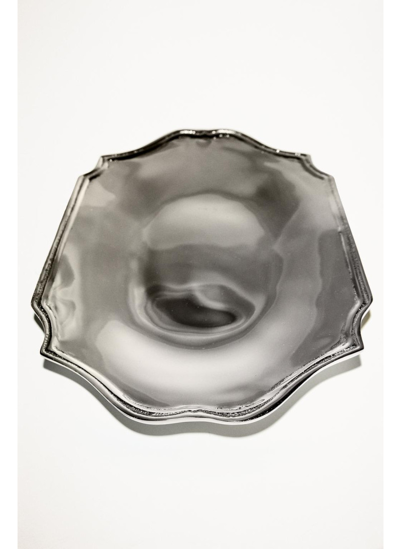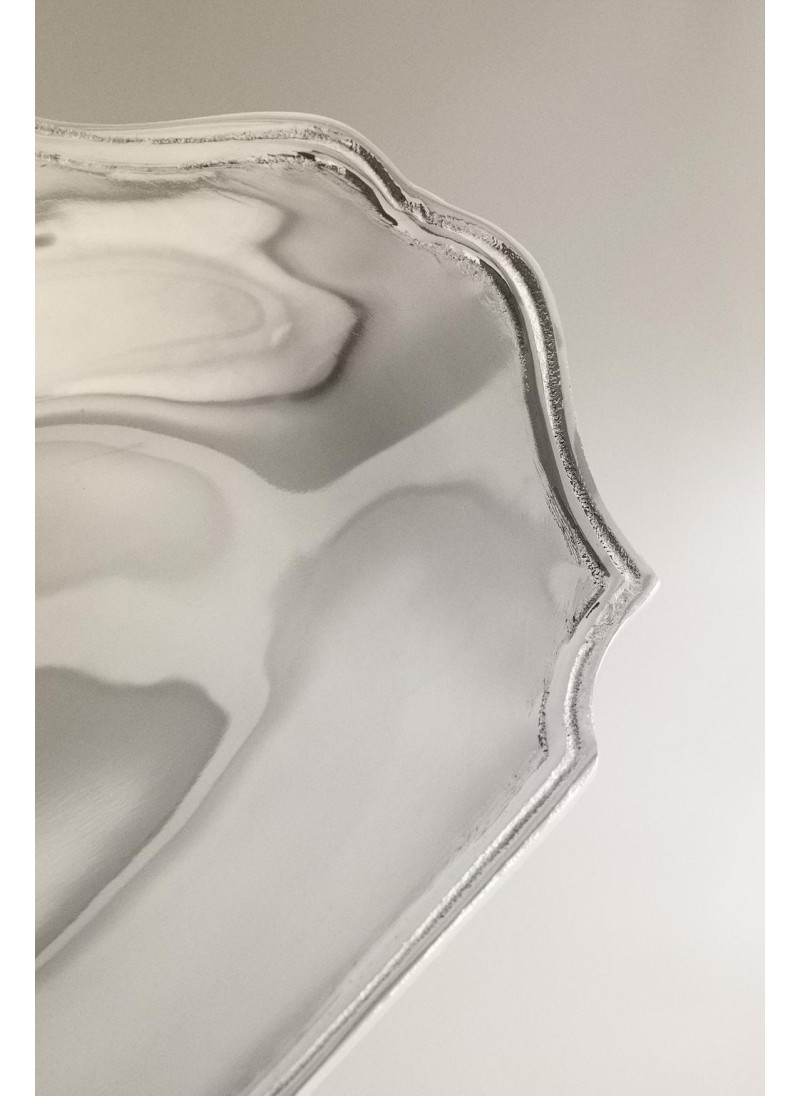 Декоративный матовый стальной лоток с волнистыми деталями по краям.
