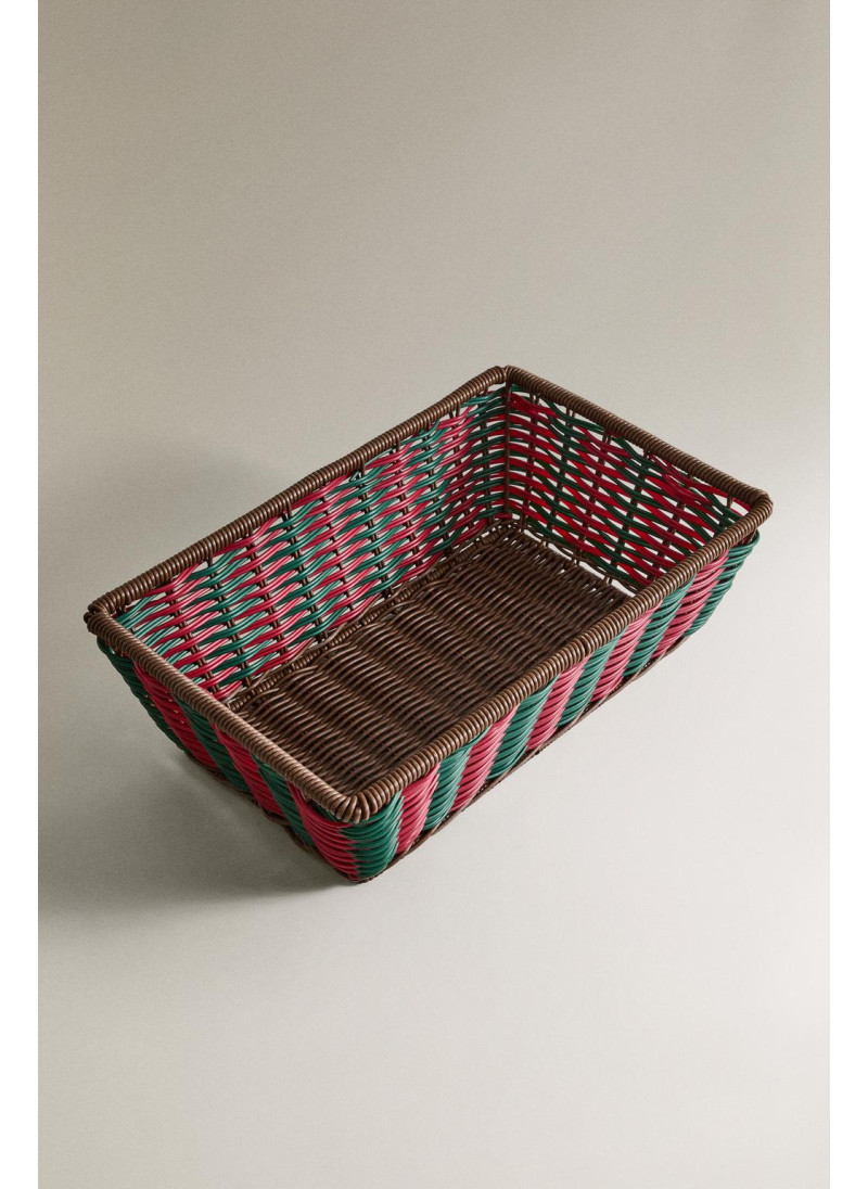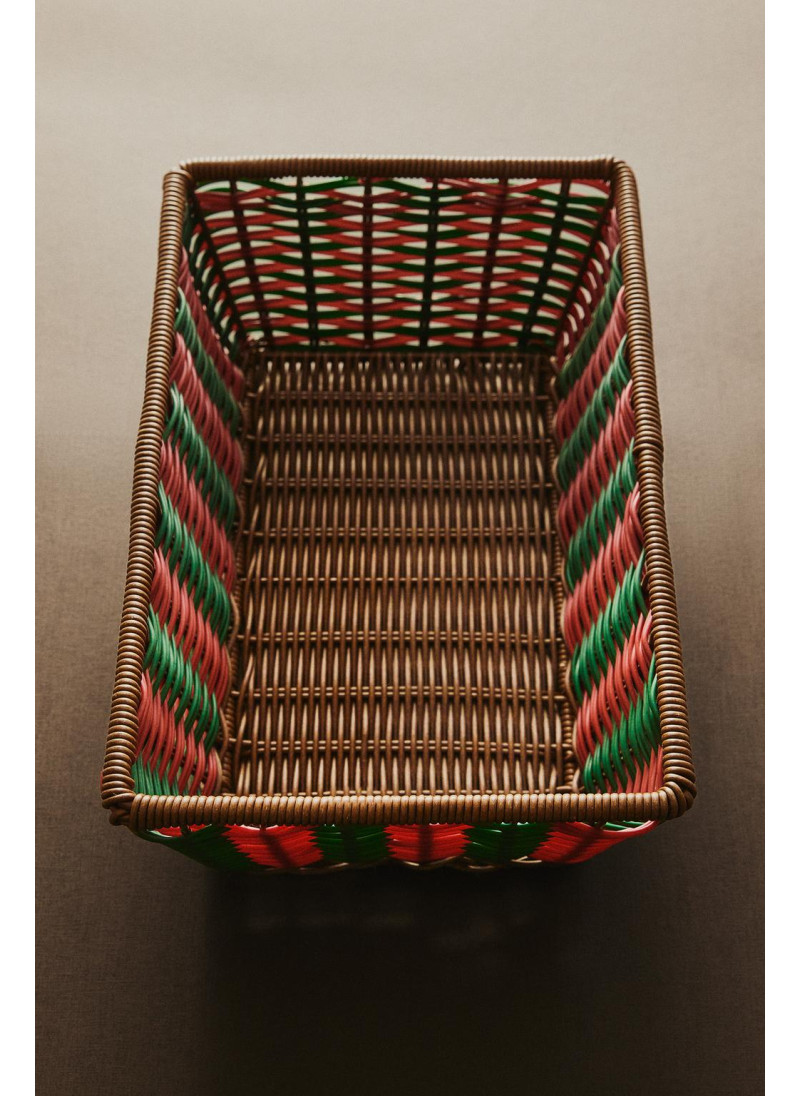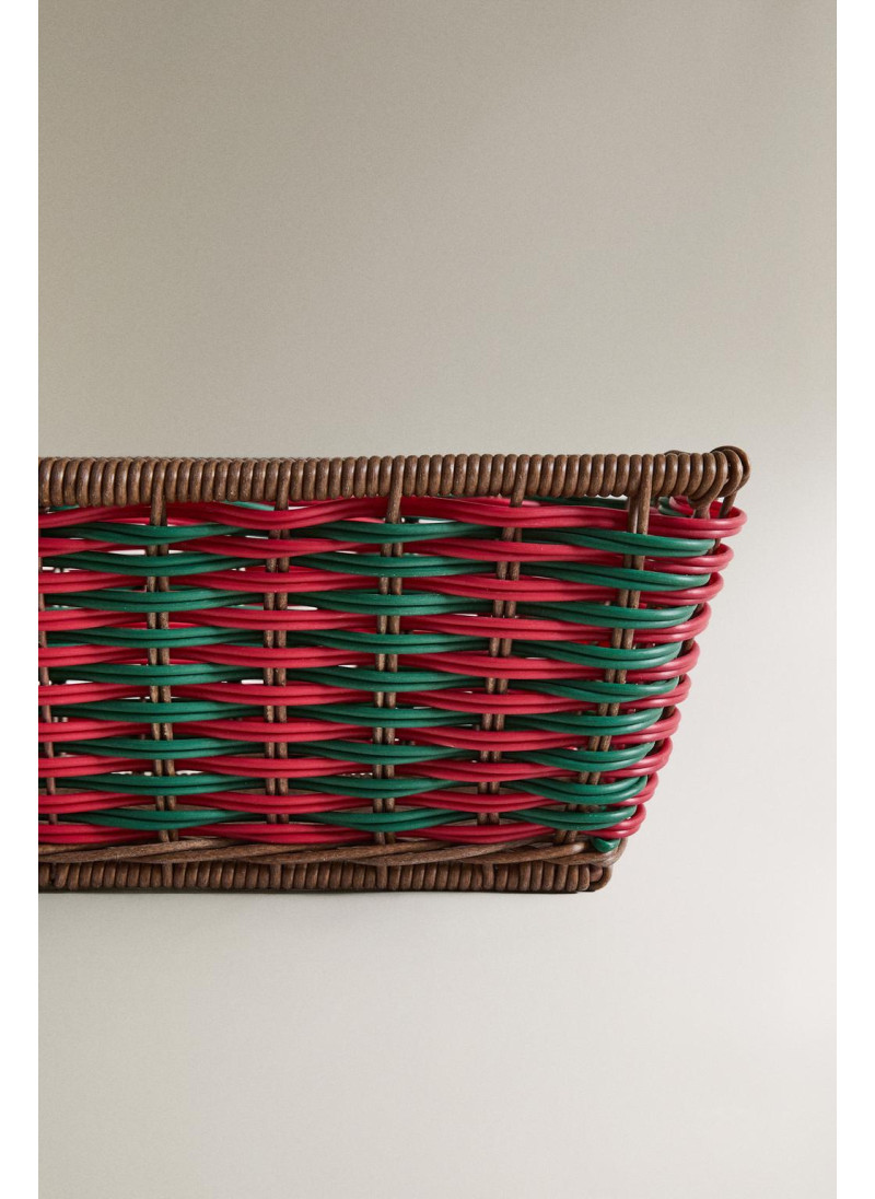 Прямоугольная плетеная корзина с рождественскими цветами на боках...
