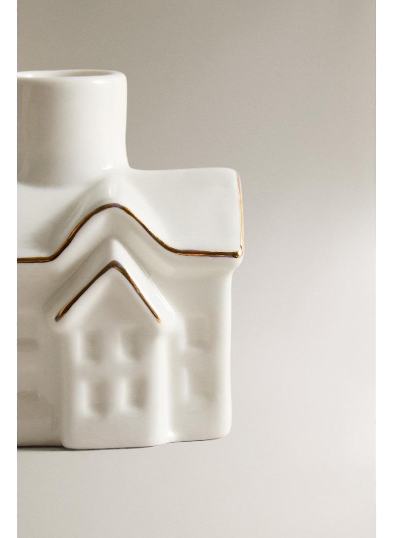 Рождественский свечной подсвечник из керамики с деталями на крыше
