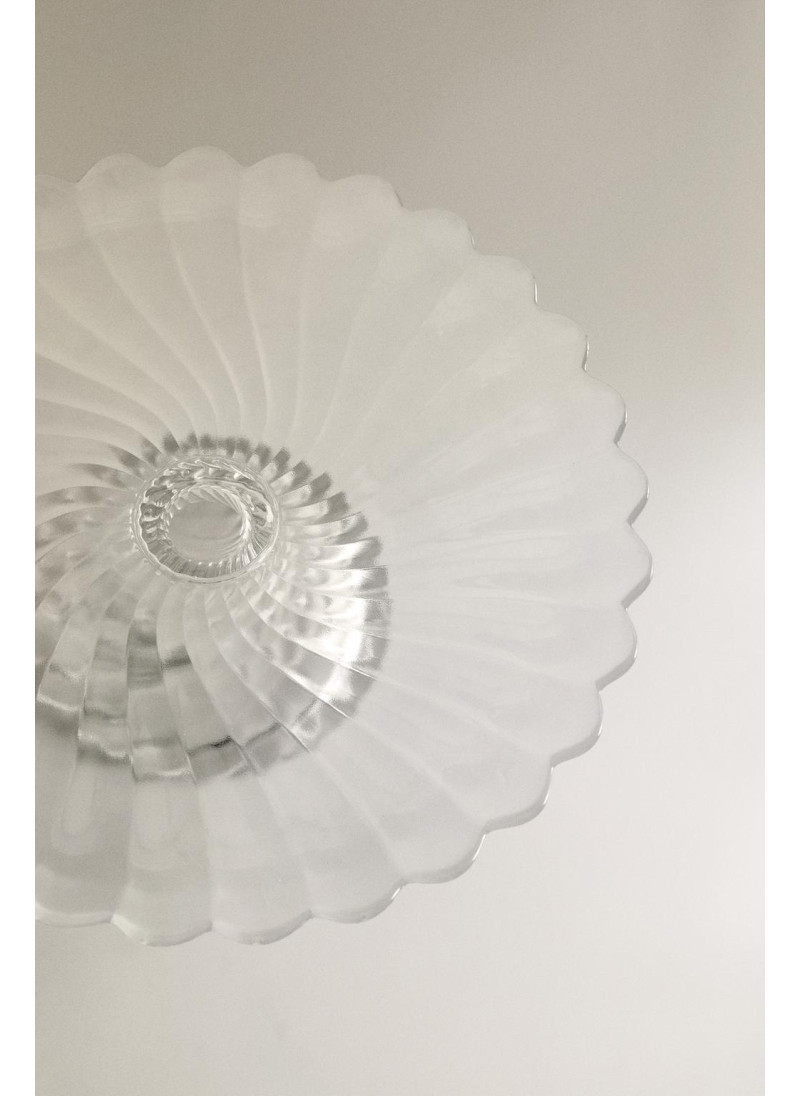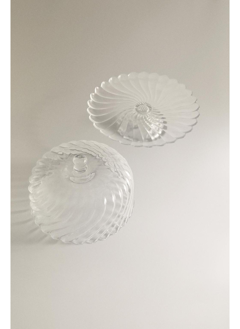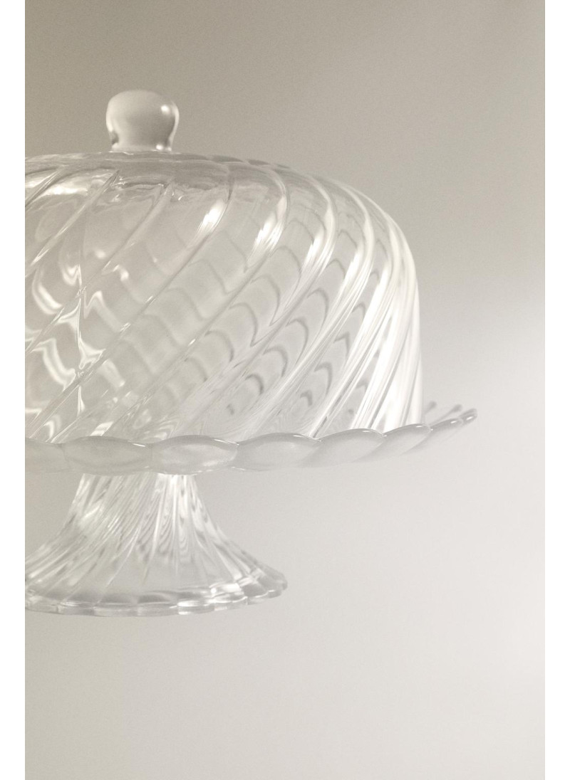 Прекрасный стеклянный тортовой поднос с полосками подойдет для сервировки различных десертов. Идеальный выбор для украшения стола на праздничном событии.
