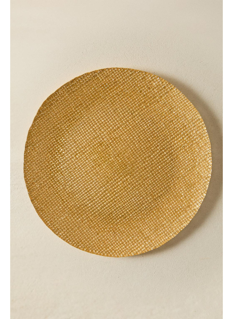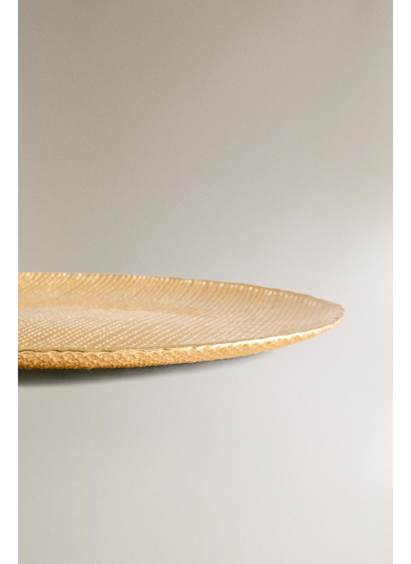 Стеклянное сервировочное блюдо с неровной текстурой и блестящим золотым покрытием...