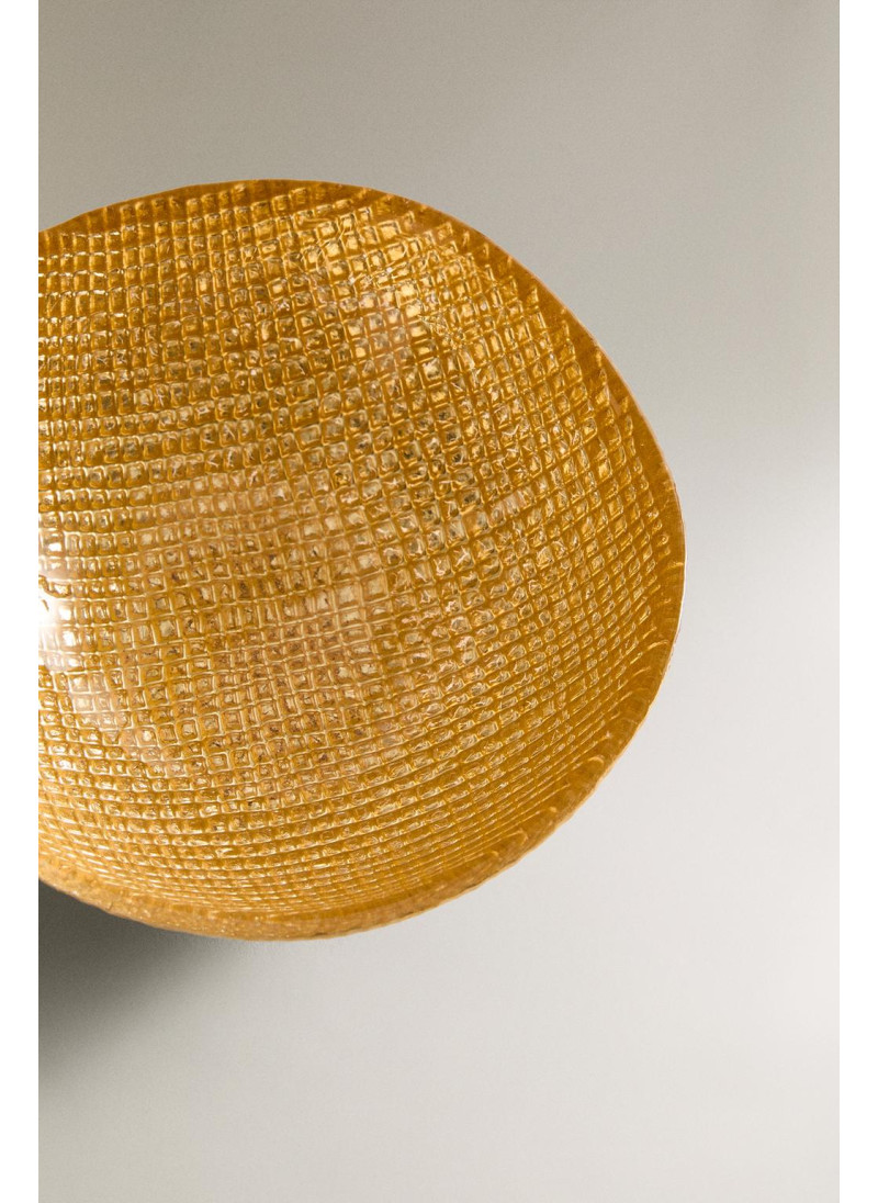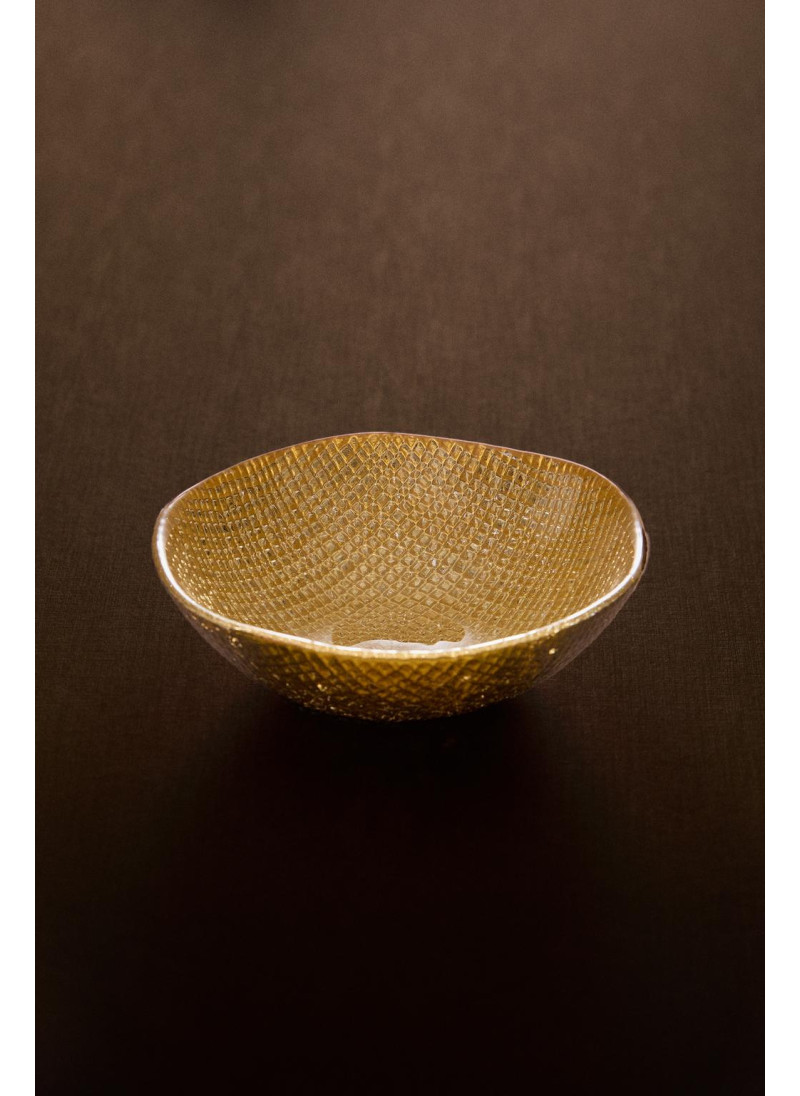 Стеклянная чаша с неправильной текстурой и блестящим золотым покрытием.