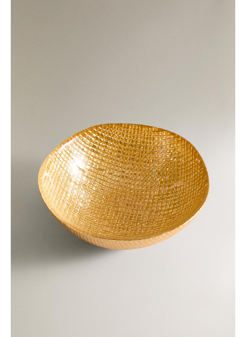 Стеклянная чаша с неправильной текстурой и блестящим золотым покрытием...