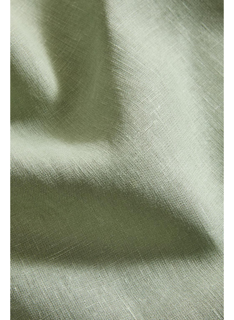Льняное рождественское салфетка с изогнутыми краями и вышитой белой отделкой из ниток...