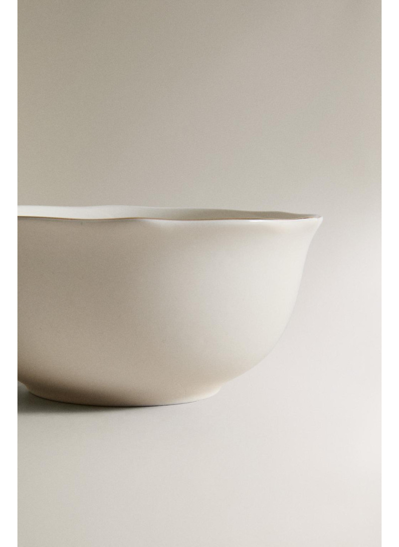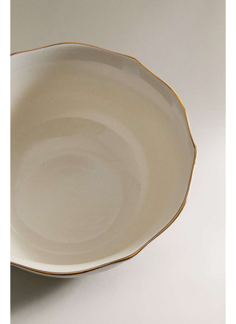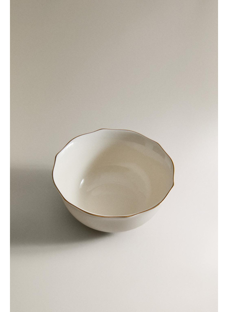 Фарфоровая чаша с волнистым краем и золотыми деталями на ободке...