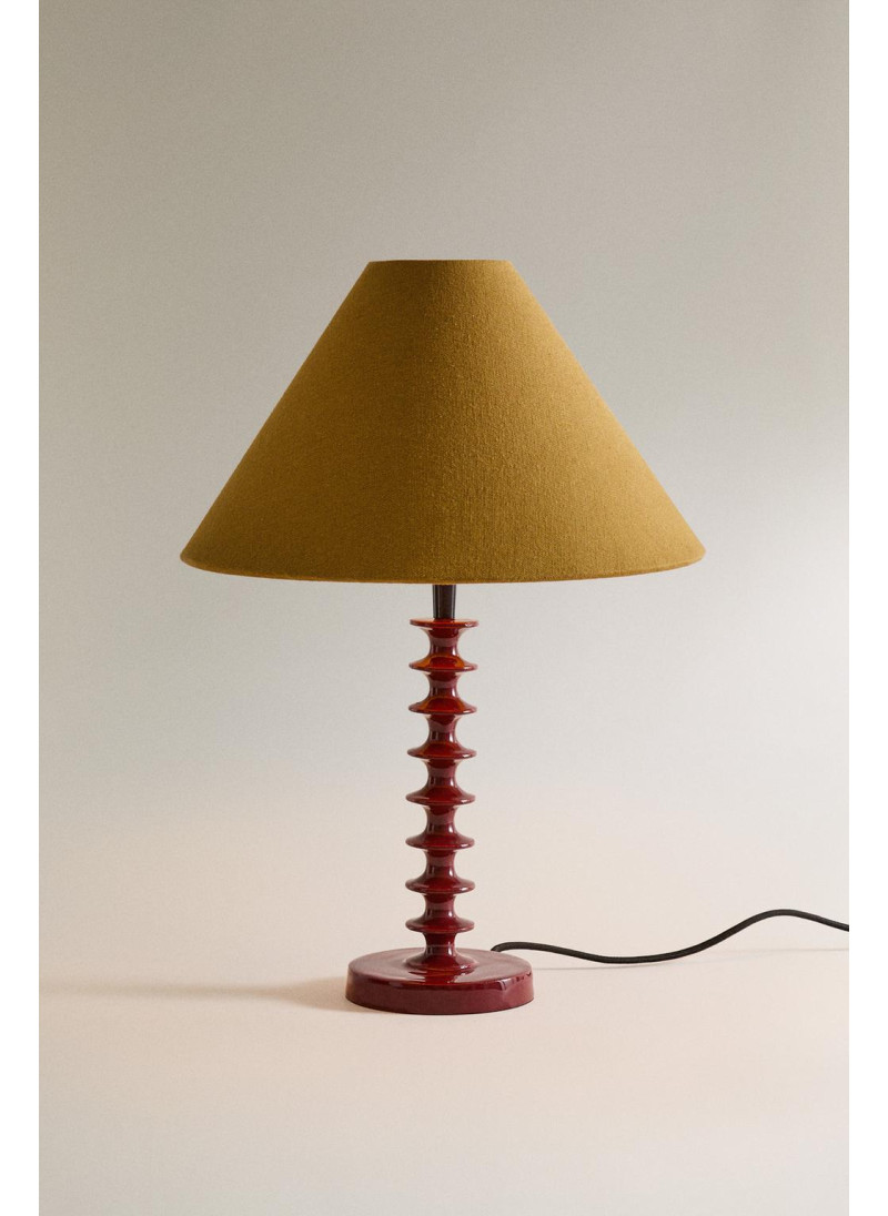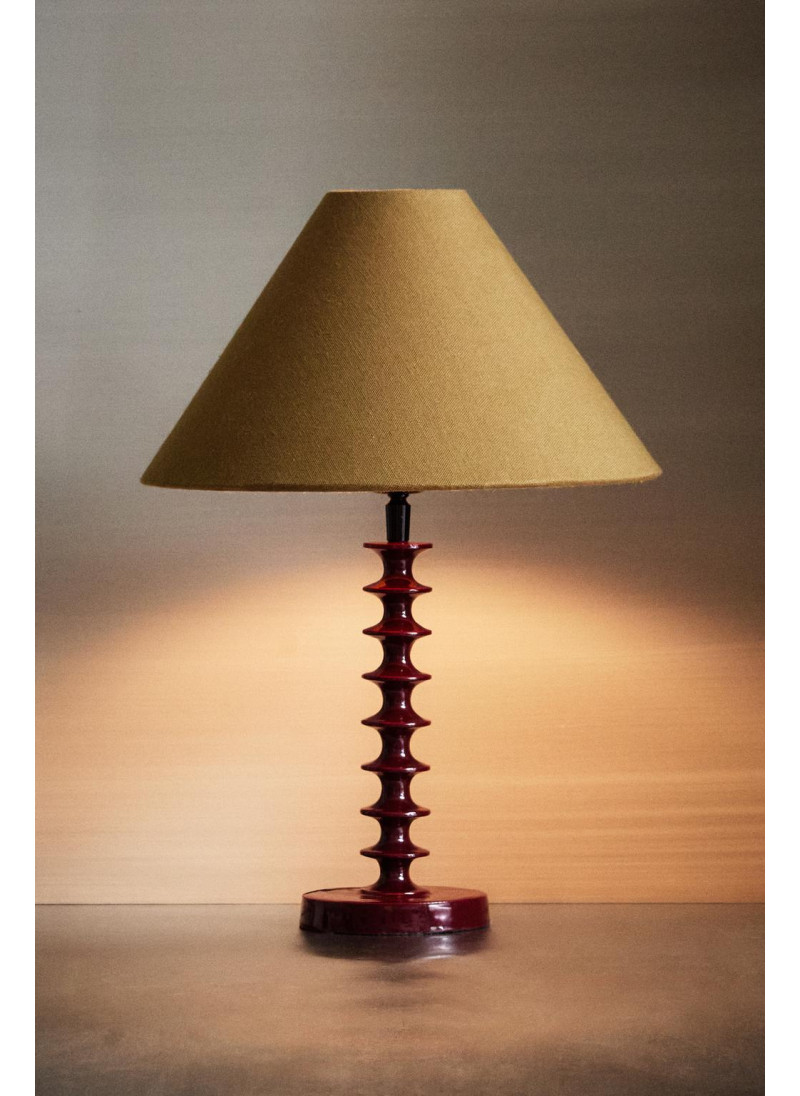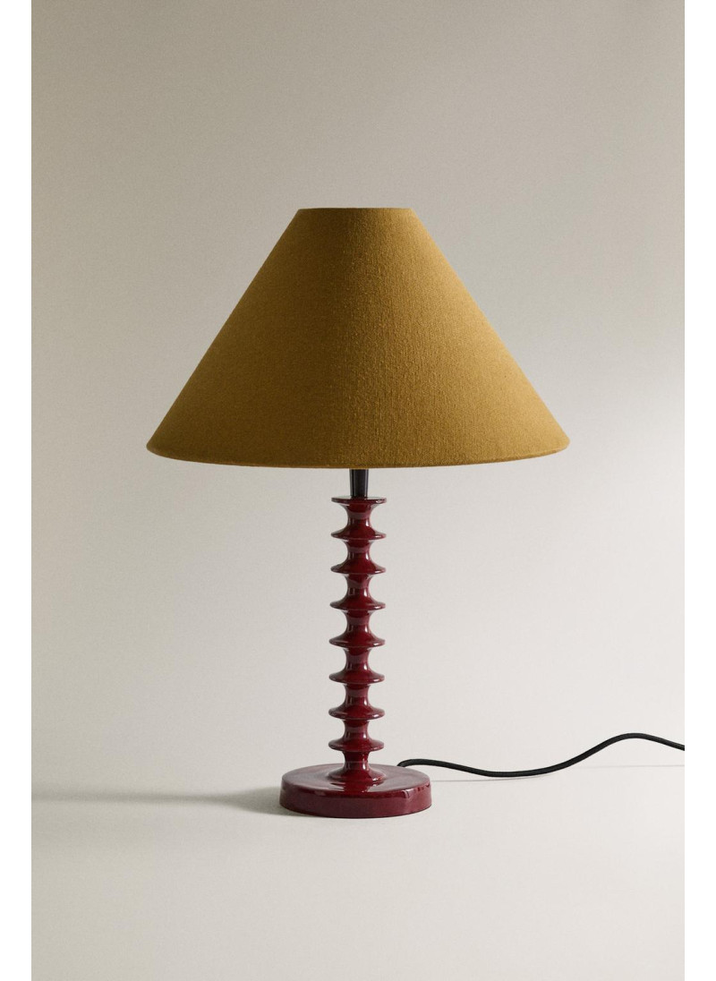 Металлическая лампа с однотонным хлопковым плафоном. Если внешний кабель или шнур лампы поврежден, его должен заменить только квалифицированный техник, чтобы избежать любой опасности.
