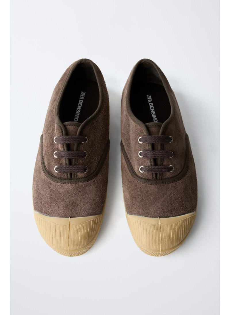 Кроссовки из 100% бычьей замши. Регулируемая шнуровка. Гибкая стелька. Усиленный резиновый носок. Резиновая подошва контрастного цвета. Специальная коллаборация Bensimon ® x Zara. КОЖА: эта модель изготовлена из эксклюзивного материала. Все отметины и неравномерный цвет являются естественными особенностями и подтверждают натуральность кожи...