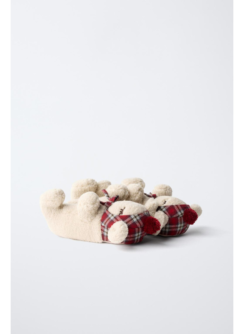 Домашние тапочки с отделкой из овечьей шкуры в форме 3D-овцы для рождественского настроения. Резиновая подошва...