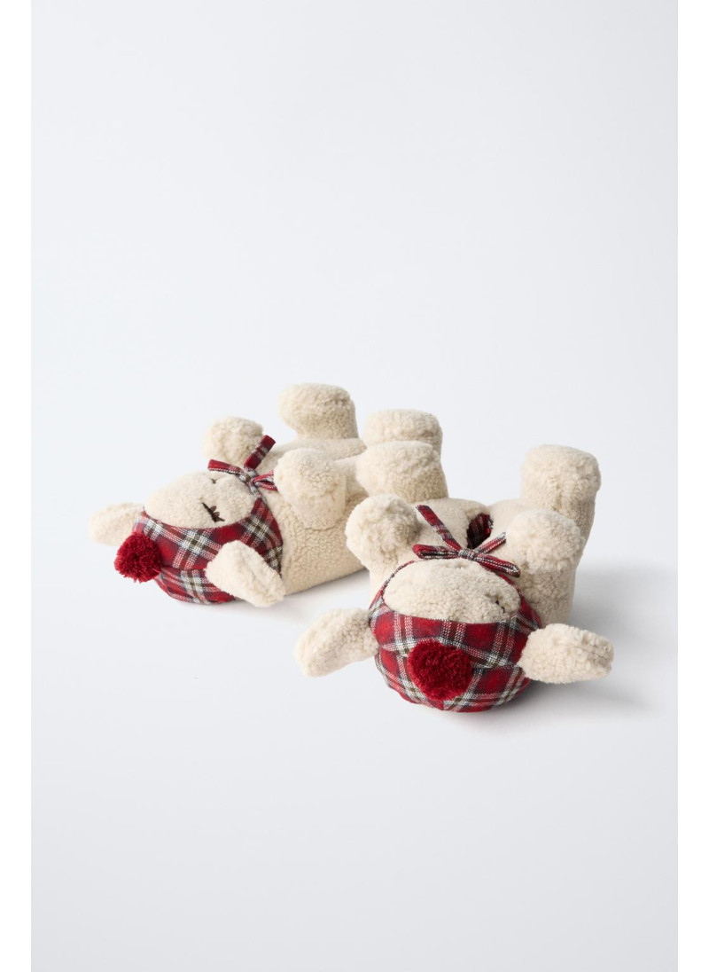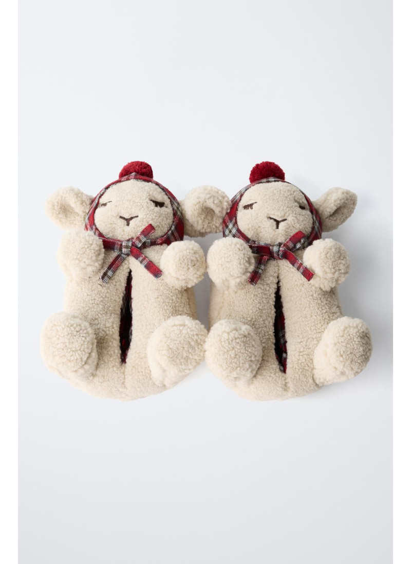 Домашние тапочки с отделкой из овечьей шкуры в форме 3D-овцы для рождественского настроения. Резиновая подошва.