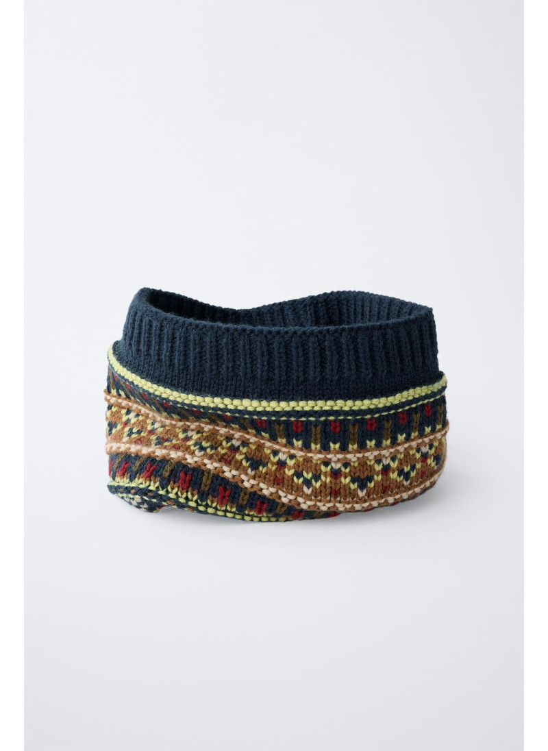 Вязанный воротник-хомут с деталями в технике жаккард.