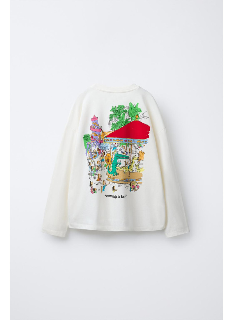 Футболка с круглым вырезом и длинным рукавом. Принт THE ENORMOUS CROCODILE ROALD DAHL © на передней и задней части. Нашивка на рукаве. Ткань 100% хлопок.