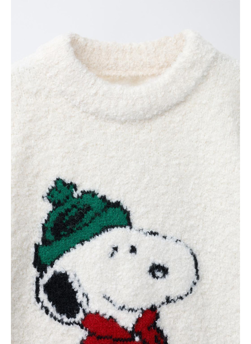 Вязаный джемпер с круглым вырезом и длинными рукавами. Украшен вышитой деталью SNOOPY PEANUTS™️ на передней части и нашивкой с логотипом на боковой стороне. Ткань с добавлением 9% шерсти.