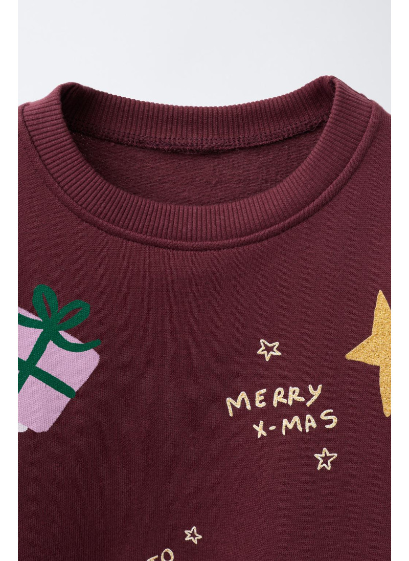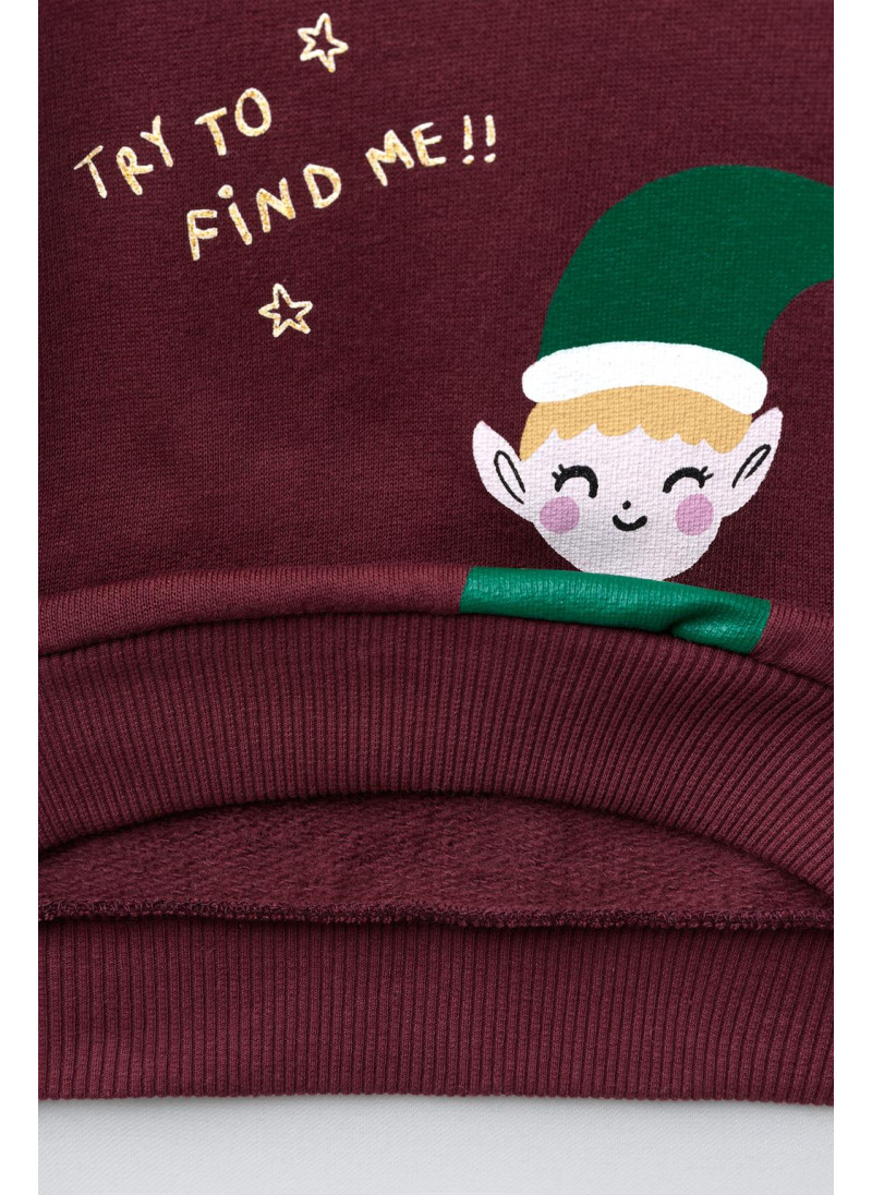 Толстовка с круглым вырезом и длинными рукавами. Ребристые манжеты. Принт с эльфами. Мягкая щетинистая изнанка, теплая и мягкая. Ткань с 80% хлопка.