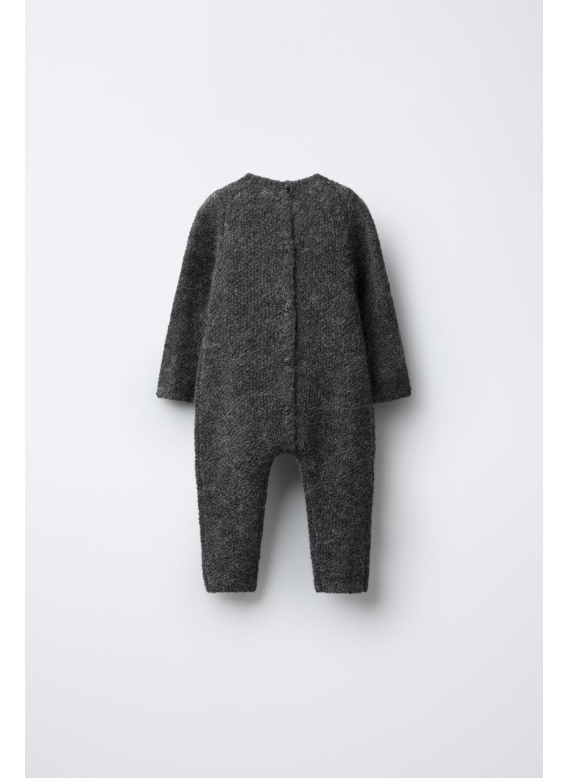 Длинный комбинезон с круглым вырезом и длинными рукавами. Застежка на пуговицу на спине. Изготовлен с добавлением 15% шерсти.