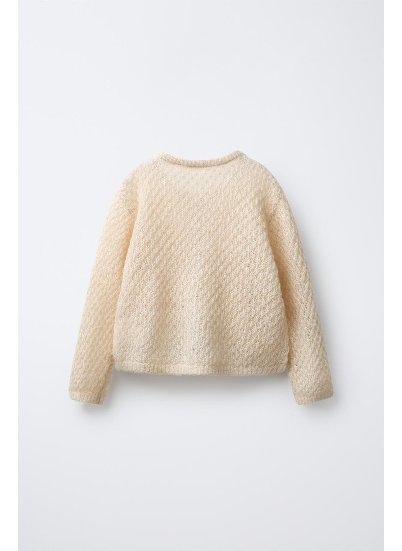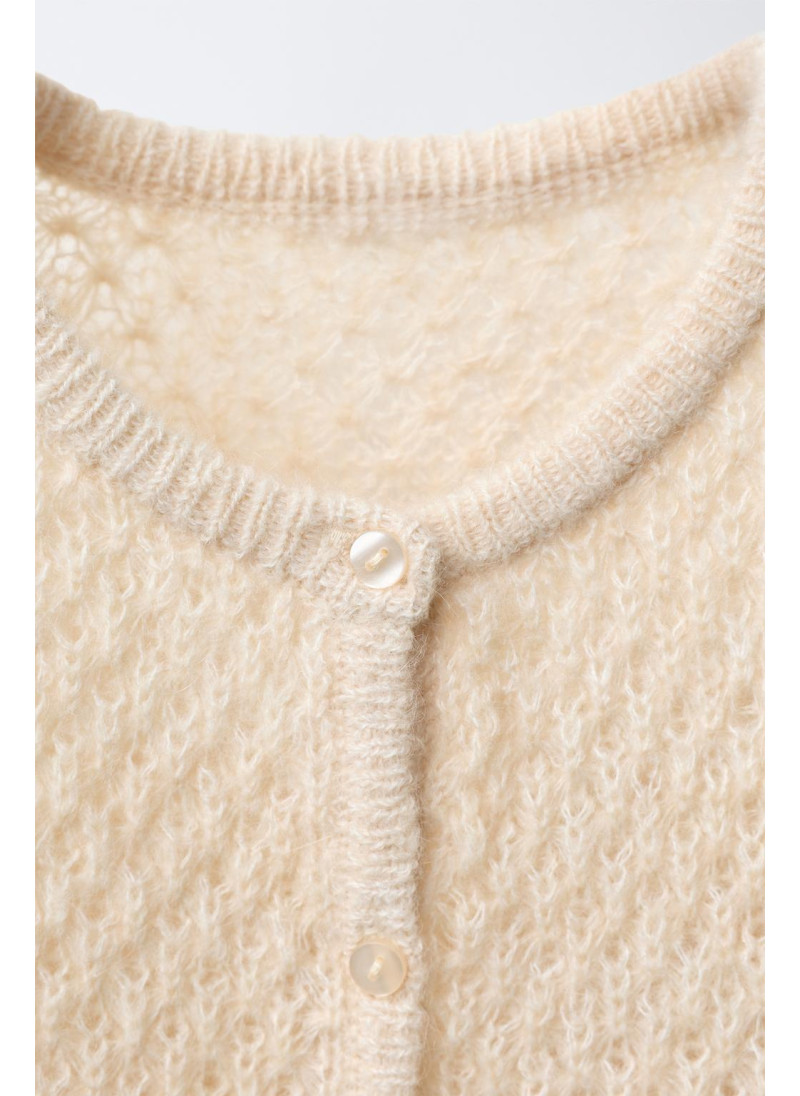 Вязаный кардиган с круглым вырезом и длинными рукавами. Пуговичная застежка спереди. Ткань с добавлением 15% шерсти и 10% альпаки.