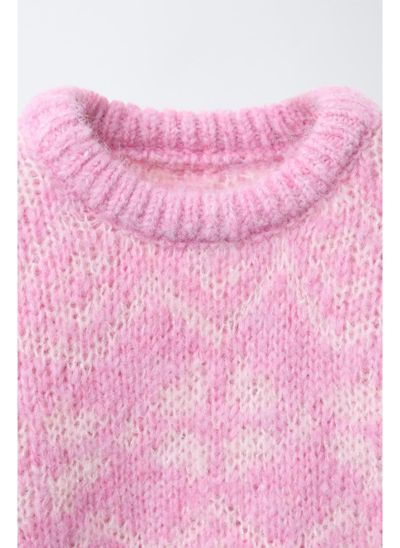 Вязаный джемпер с круглым вырезом и длинными рукавами. Украшен жаккардовым принтом. Изготовлен на 19% из шерсти.