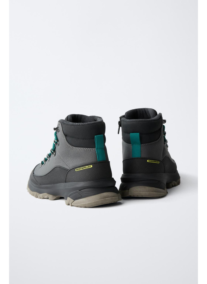Подкладка водоотталкивающих туристических ботинок. С боковой молнией и регулируемыми шнуровками. Задний петелька для удобного надевания. Гибкая стелька. Резиновая подошва. ВОДООТТАЛКИВАЮЩИЕ: Материалы, устойчивые к поверхностным водным потокам...