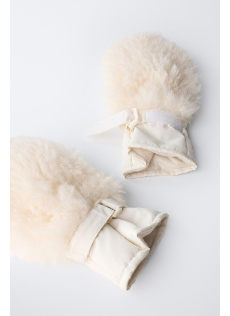 Митенки из искусственного курчавого меха с регулируемым липучкой на запястье. С флисовой подкладкой.