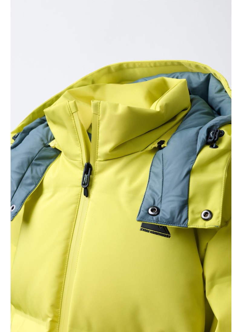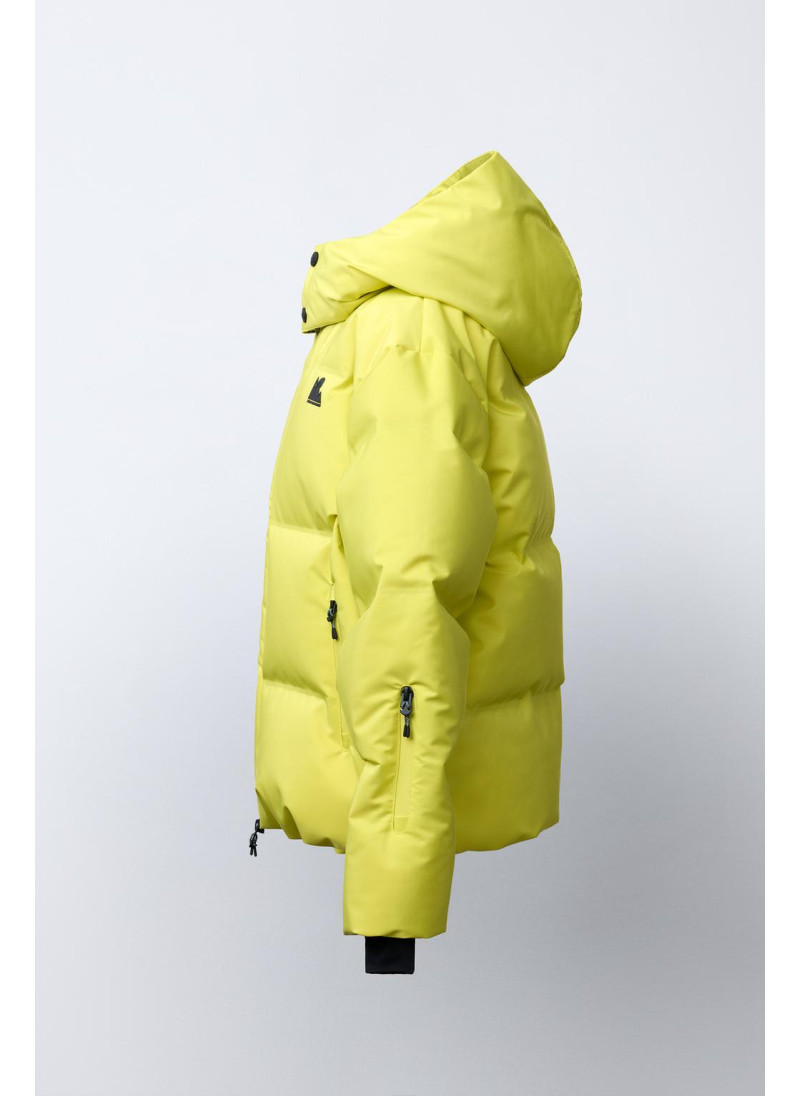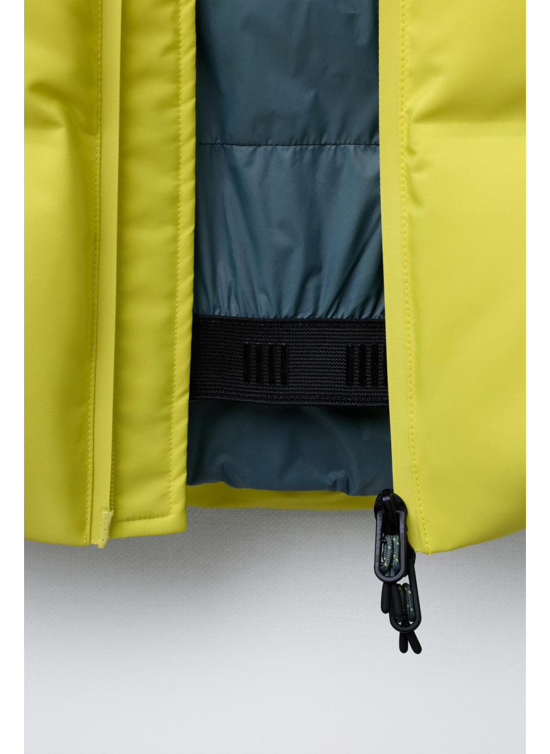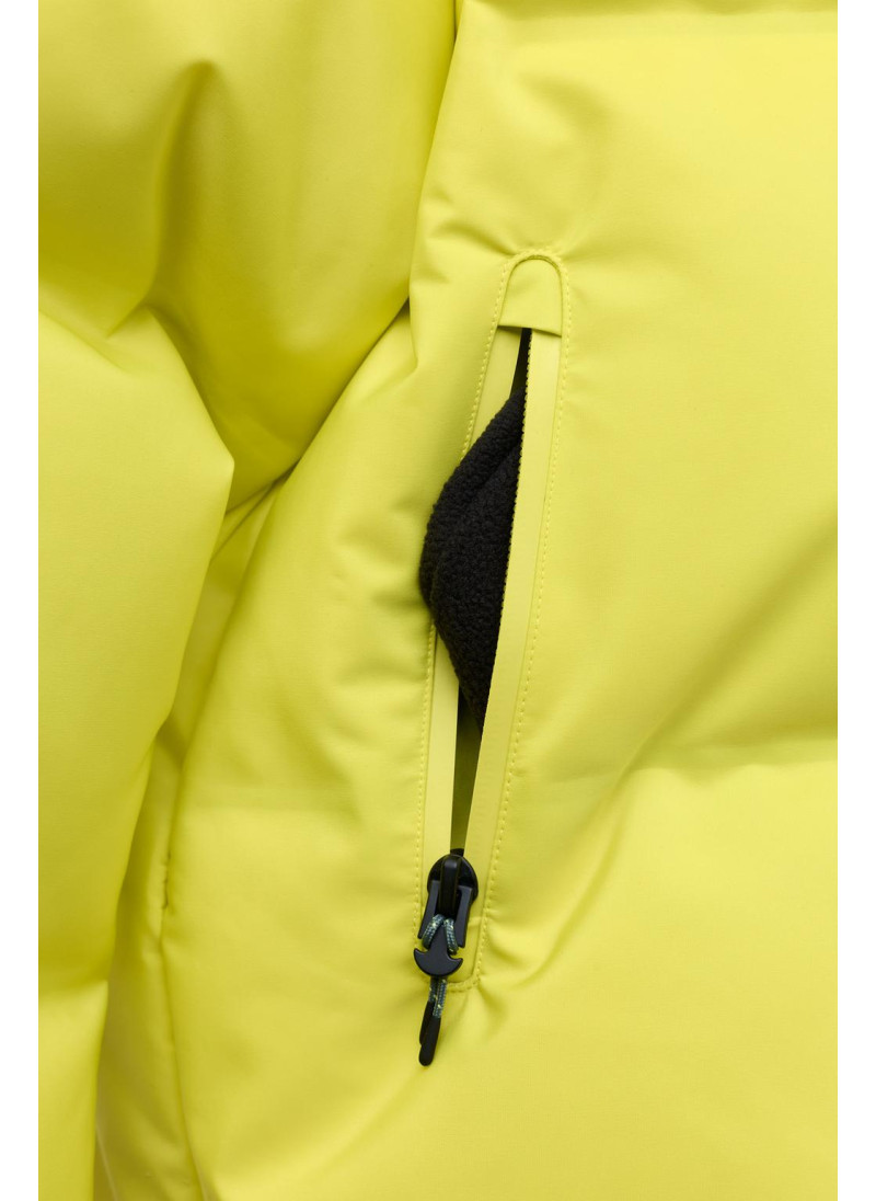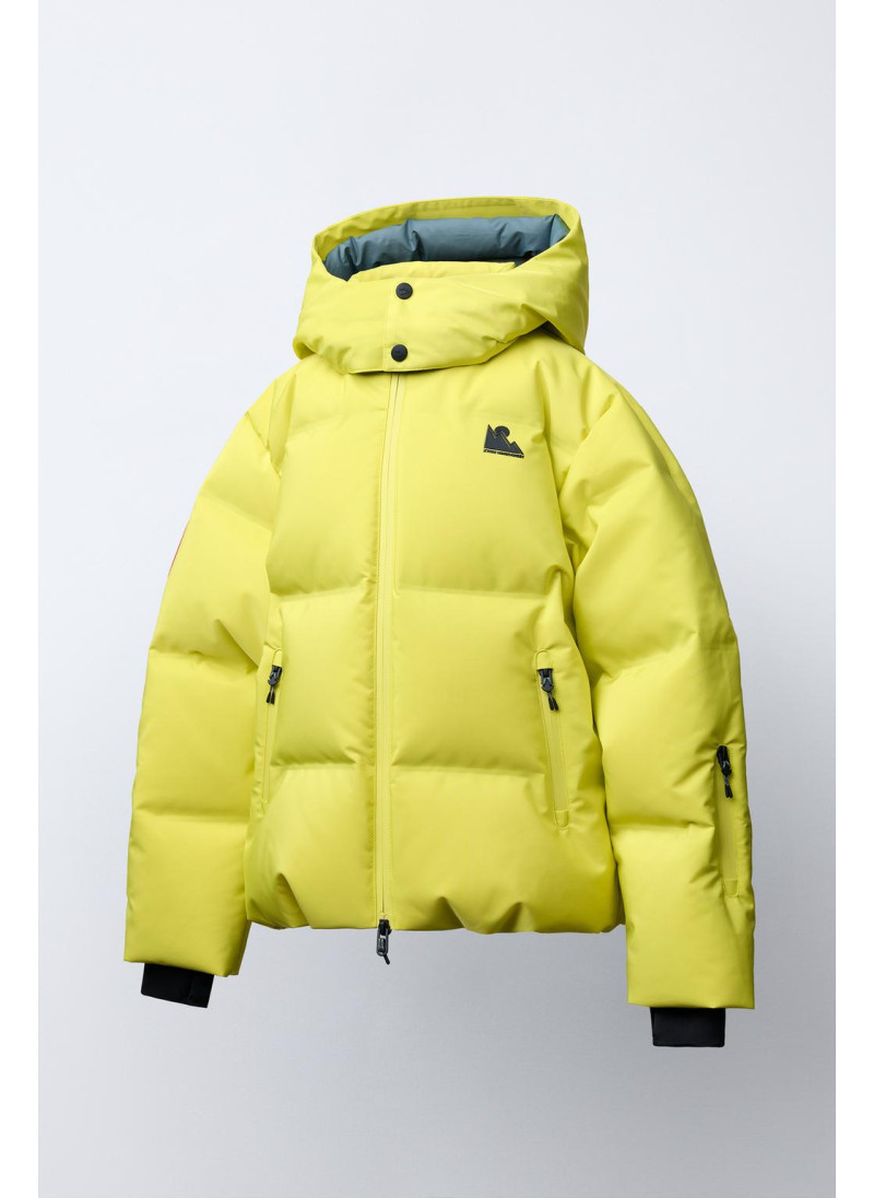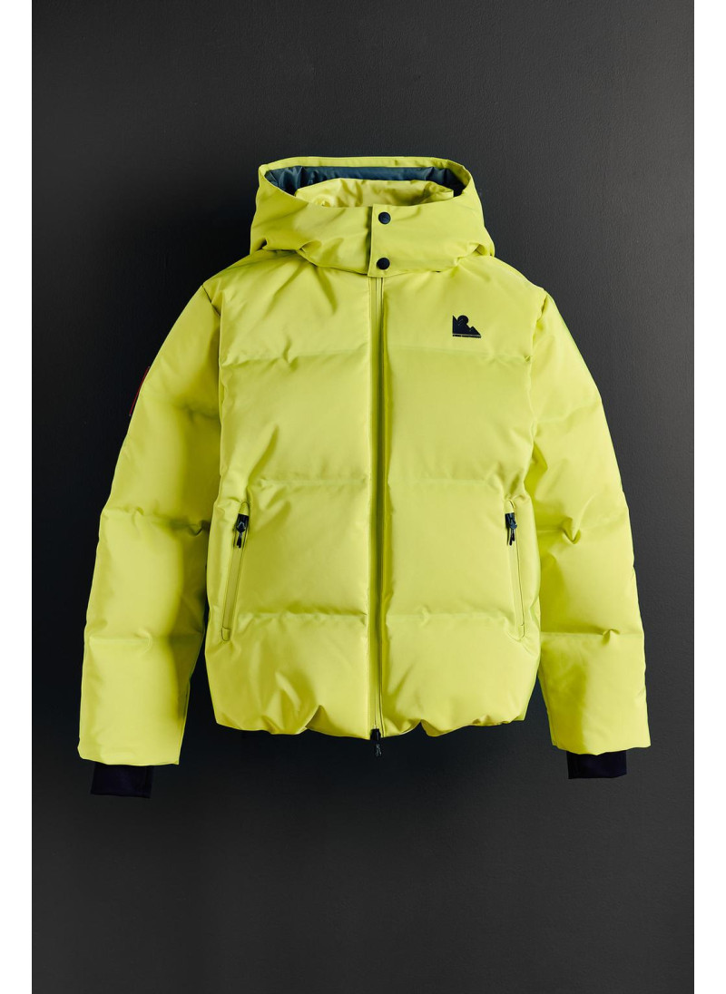 Пуховик с наполнителем из 80% пуха и 20% пера с показателем тепловой мощности ≥710, обеспечивающий тепло в температурах до -16°C во время катания на сноуборде/лыжах при умеренной активности. Ветрозащитная и водонепроницаемая ткань с водостойкостью ≥1 500 мм, с двойным слоем, который сочетает внешнее покрытие с мембраной для предотвращения проникновения воды и воздуха, обеспечивая при этом дышимост..