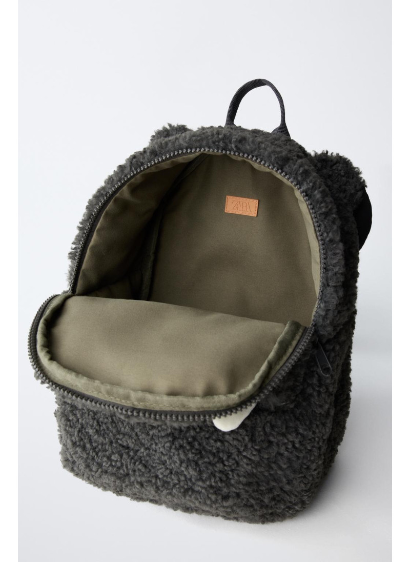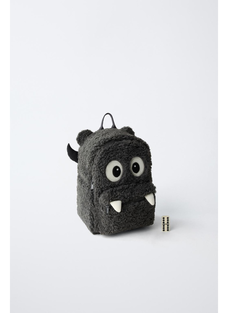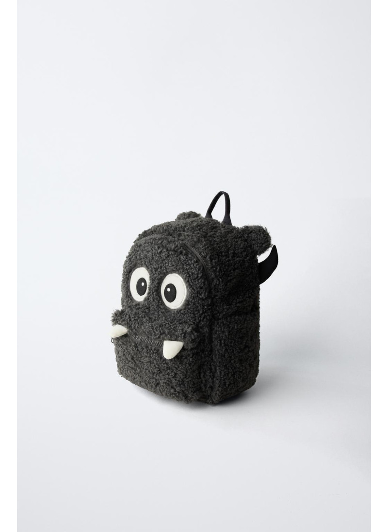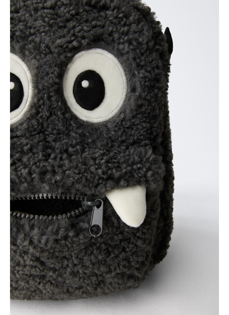 Детальный рюкзак Монстр. Имеет отделку из искусственного меха. Основной отсек с застежкой-молнией. Фронтальный карман с молнией. Верхняя ручка и регулируемые двойные плечевые лямки.
