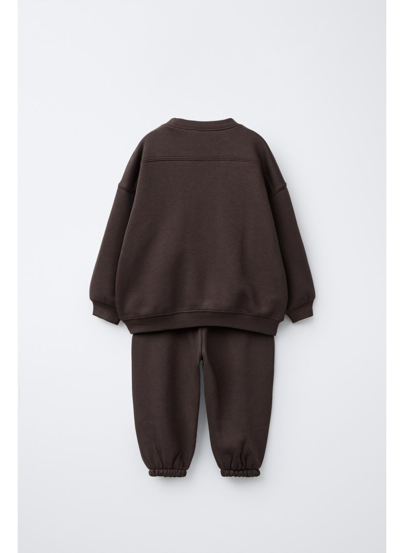 Двухчастный костюм. Круглый вырез, свитшот с длинным рукавом. Манжеты в рубчик. Брюки-джоггеры с эластичным поясом. Аппликация бренда. Мягкая флисовая подкладка. Ткань с 72% хлопка.