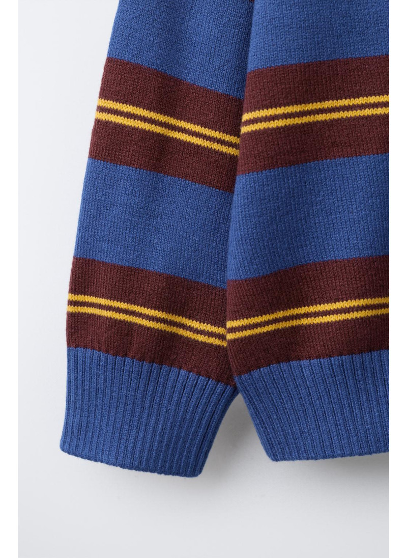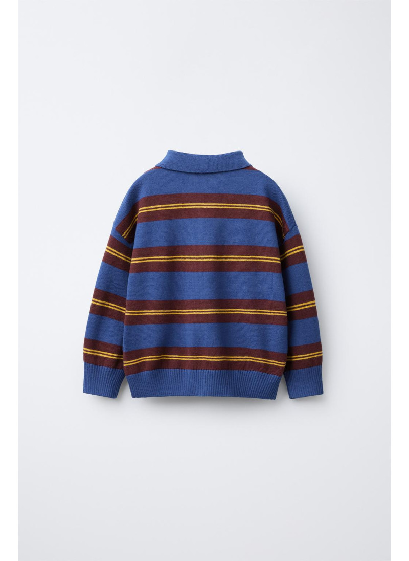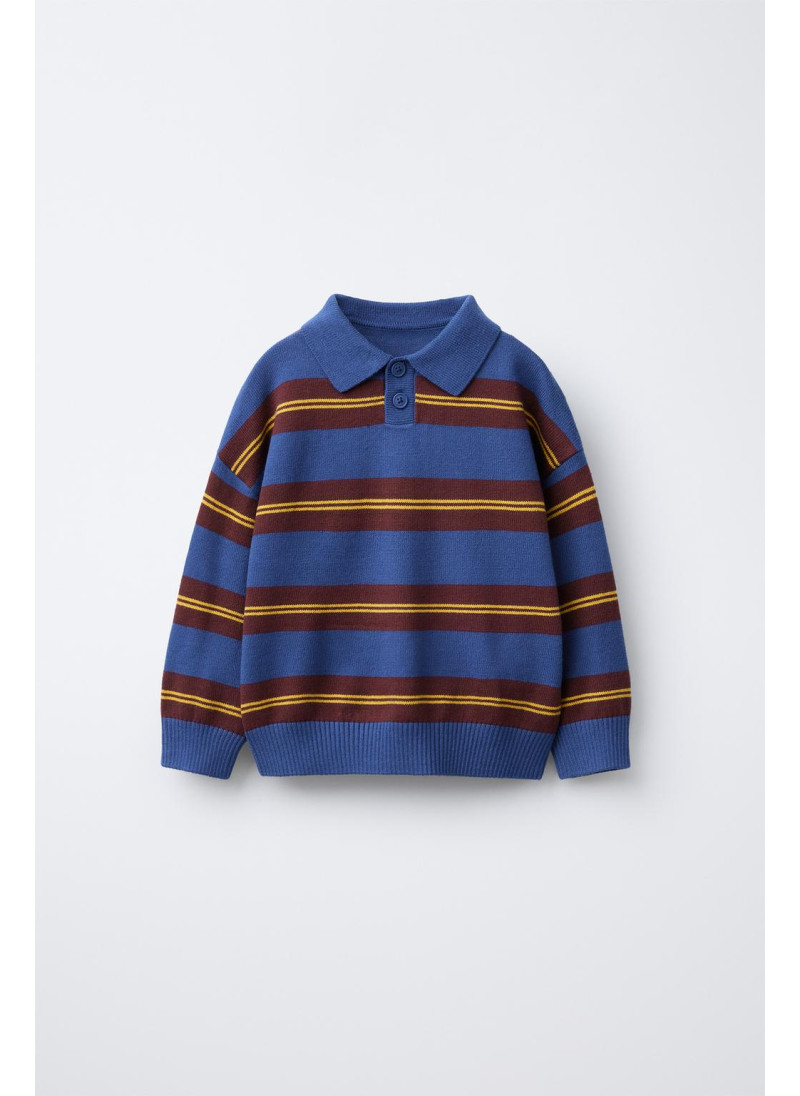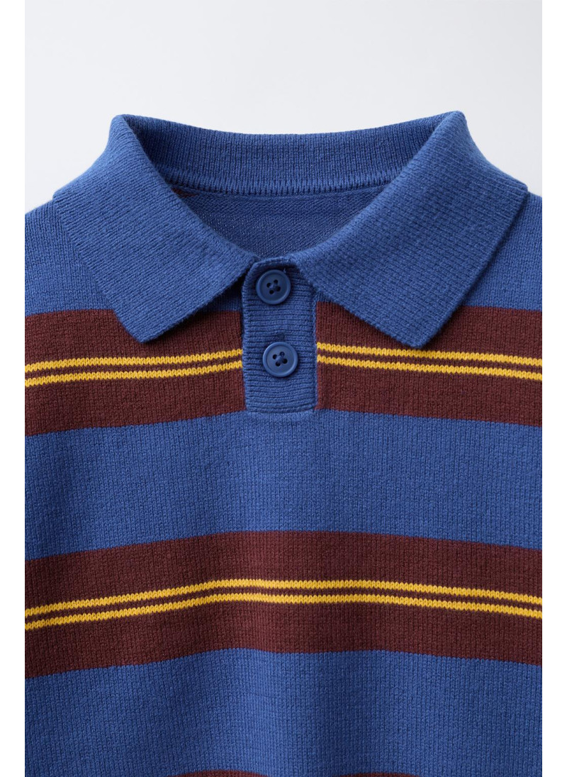 Длинрм рукавом поло из вязаного полотна с воротником-поло. Имеет пуговицы по горловине типа Henley и полосатый принт...