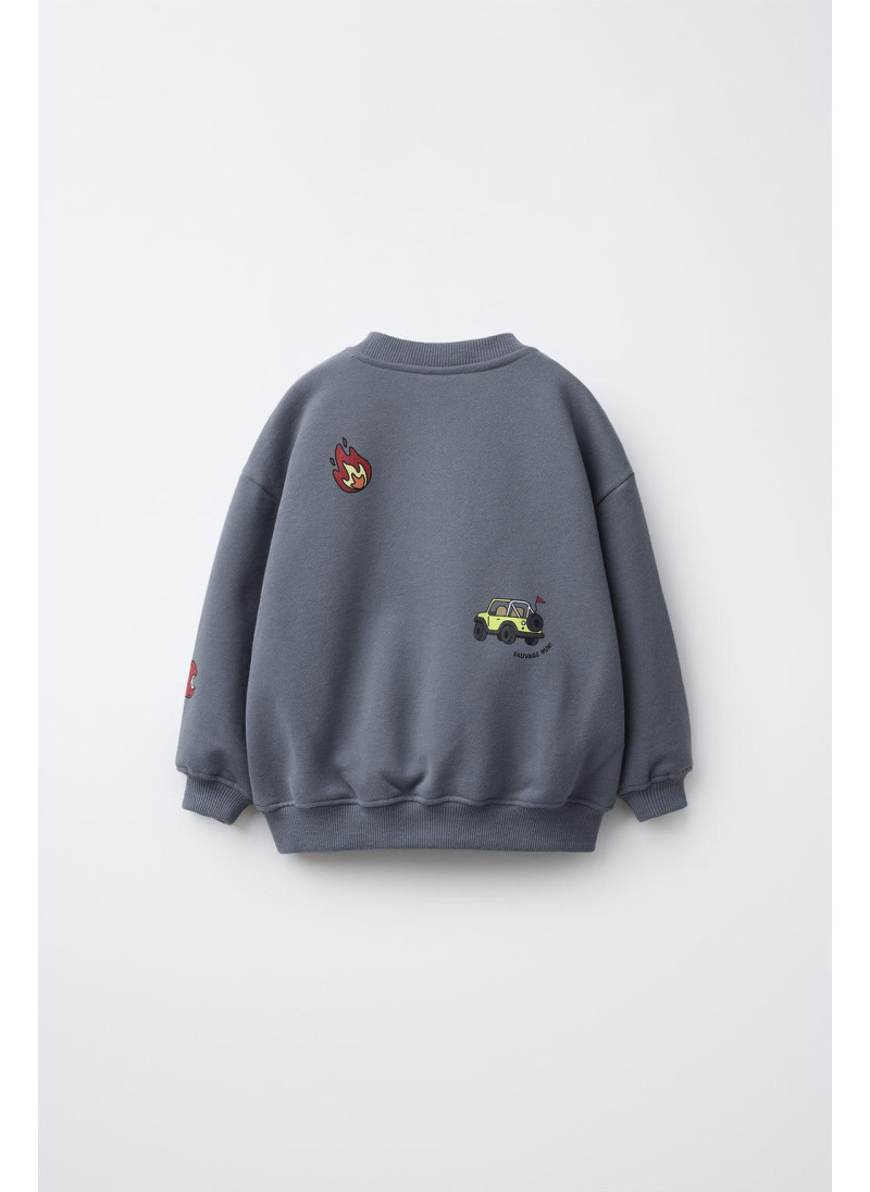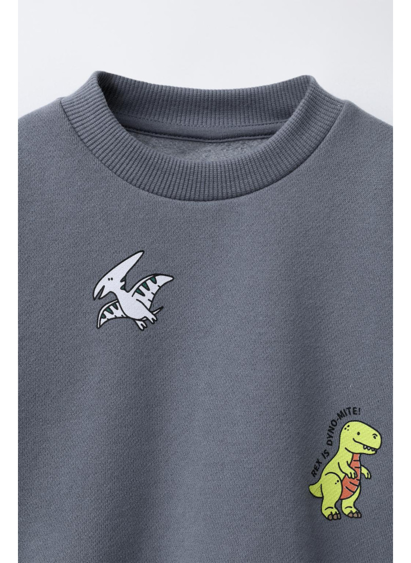 Свитшот с круглым вырезом и длинными рукавами. Манжеты в рубчике. Животный принт. Теплый и мягкий внутри. Ткань на 80% состоит из хлопка.