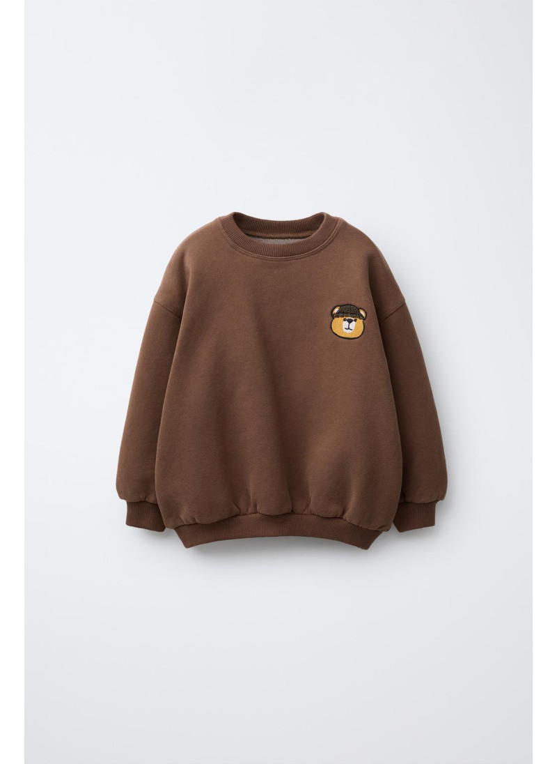 Длинный рукав свитшота с круглым вырезом. Ребристые манжеты. Вышитый медвежонок на груди. Мягкий ворс внутри. 80% хлопок.