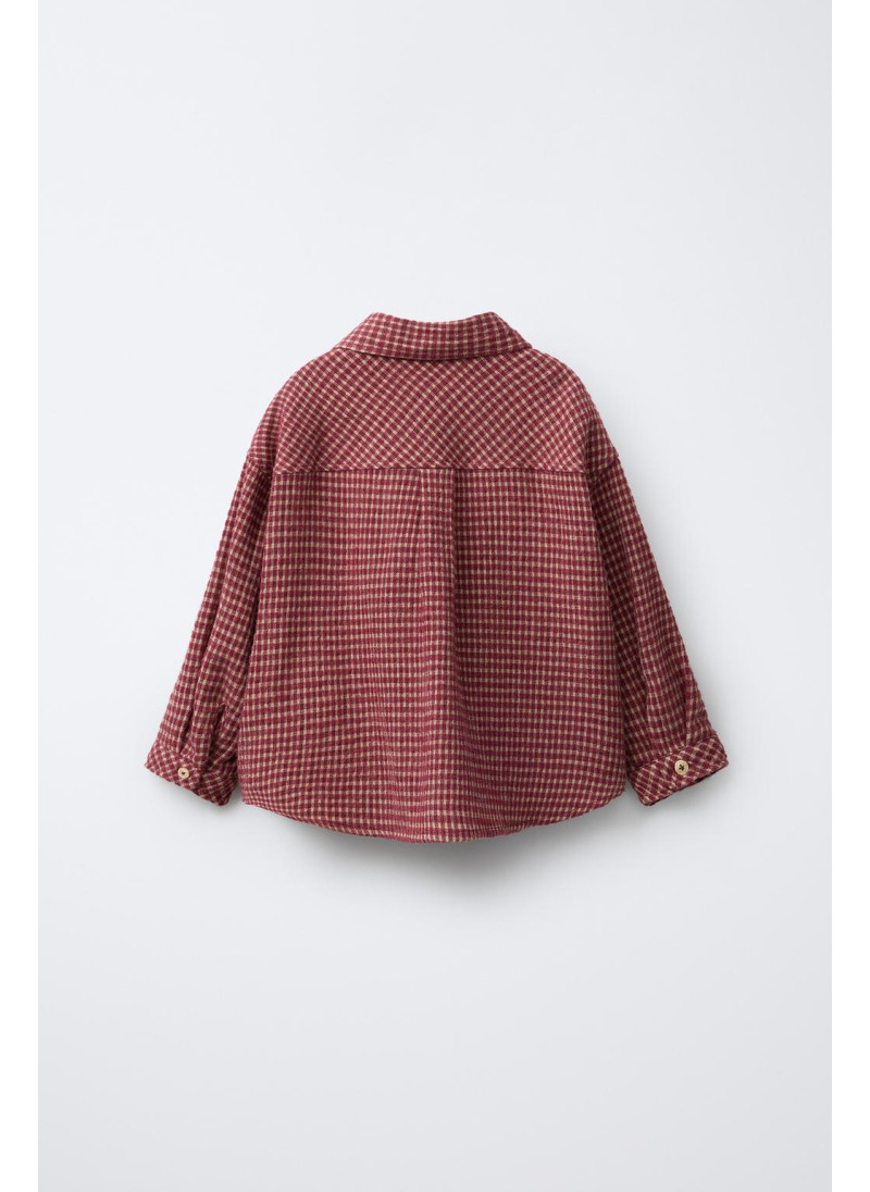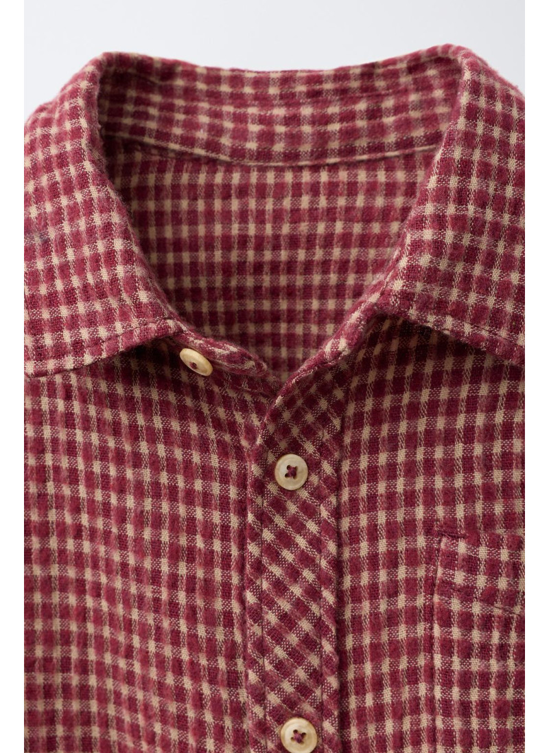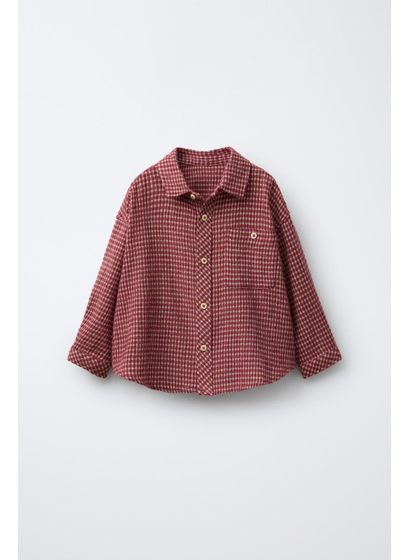 Рубашка с воротником и длинными рукавами на пуговицах. Застежка на пуговицы спереди. Нагрудный карман с застежкой на пуговицу. Клетчатый принт.