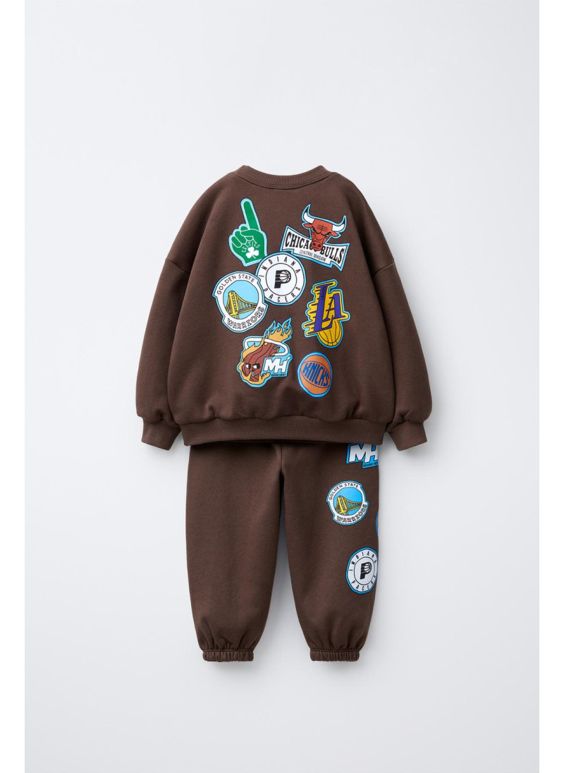Двухэтапный набор. Круглый вырез, майка с длинным рукавом. Ребристые манжеты. Джоггеры с эластичным поясом. Принт NBA - МУЛЬТИ ТИМОВ. Мягкий начес изнутри. Ткань с 82% хлопка.