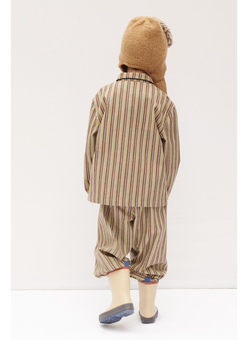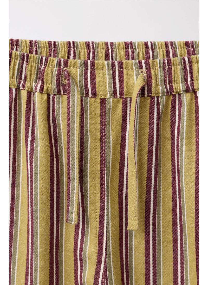 Брюки с эластичным поясом и регулируемыми шнурками спереди. Полосатый принт. Ткань 100% хлопок.
