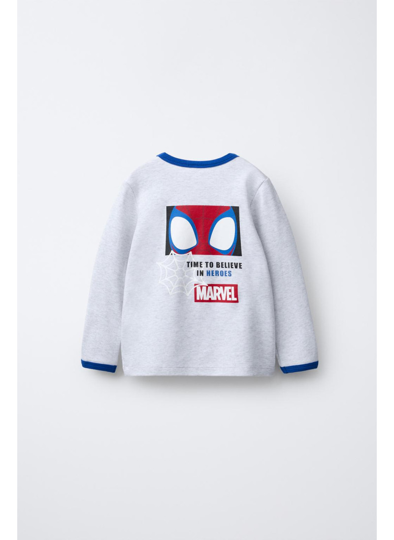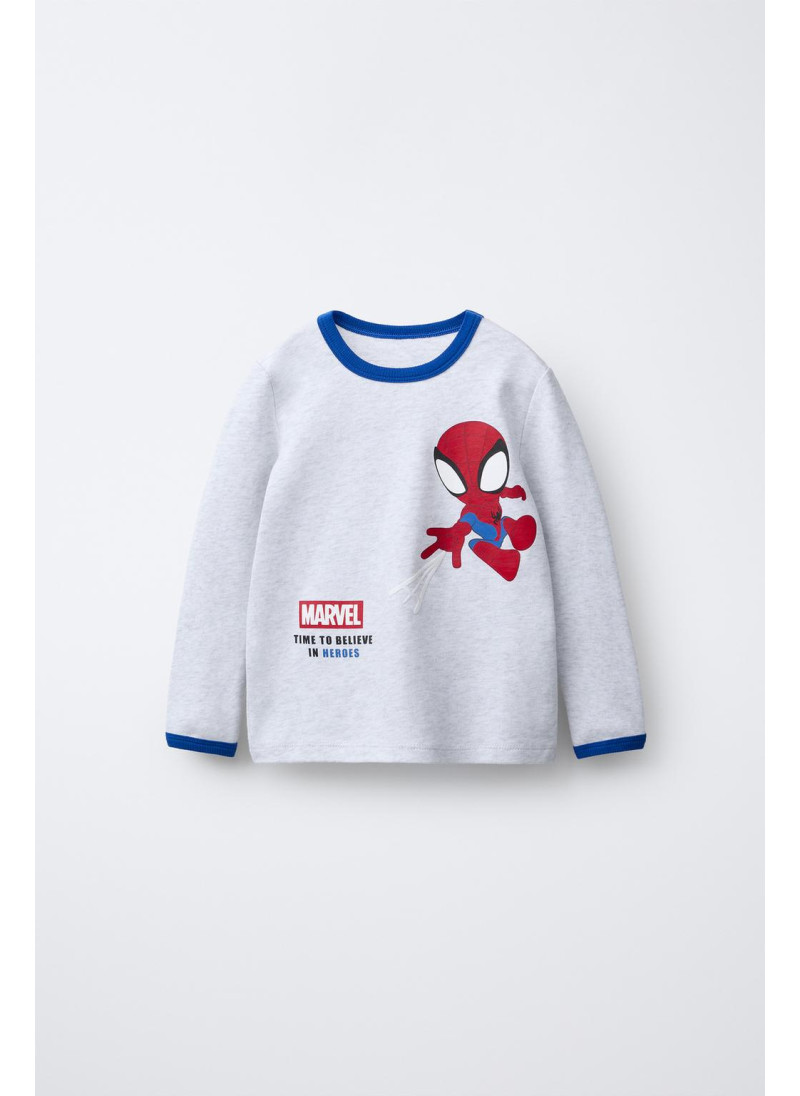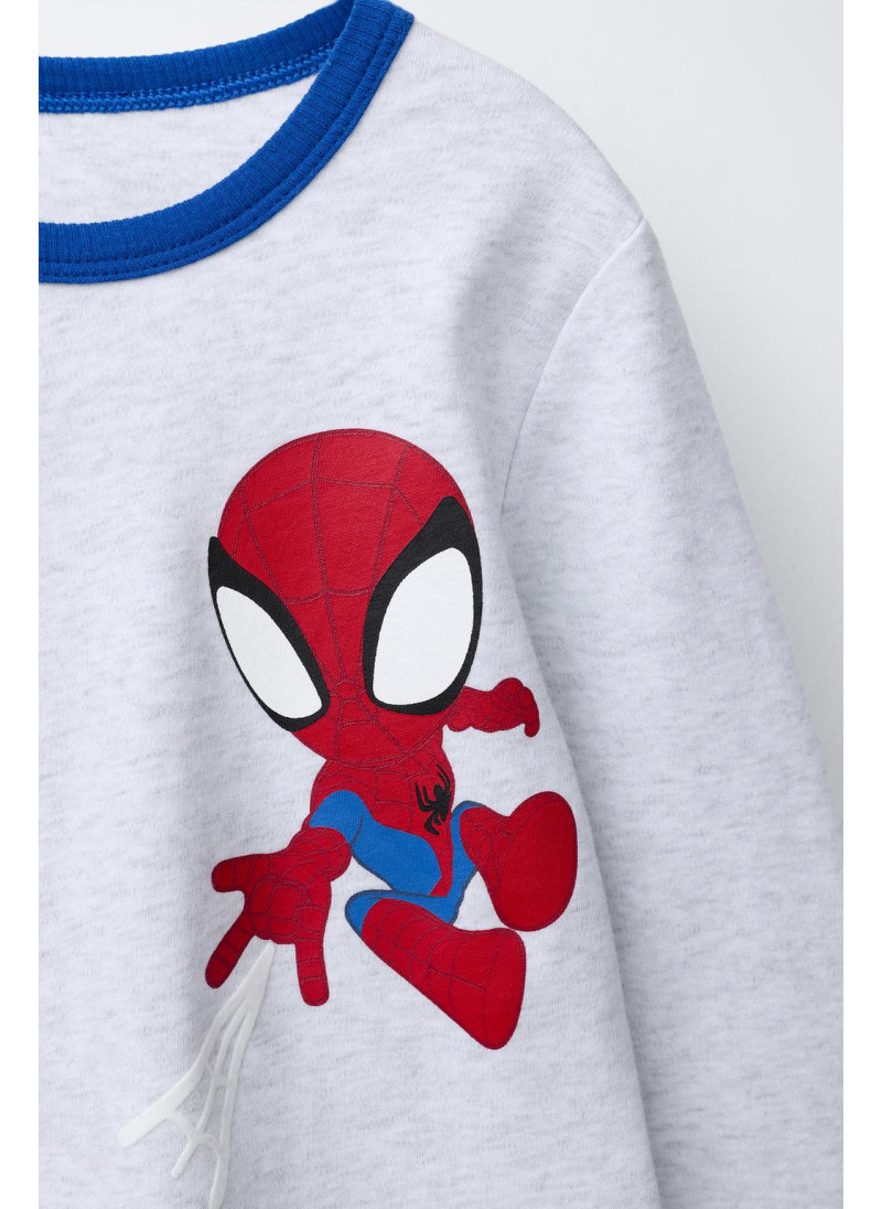 Двухчастный комплект пижам. Футболка с круглым вырезом и длинным рукавом. Яркие отделки с контрастным цветом. Брюки с эластичным поясом и апликацией спереди. Горловина обработана живой кромкой. Принт SPIDEY © MARVEL.