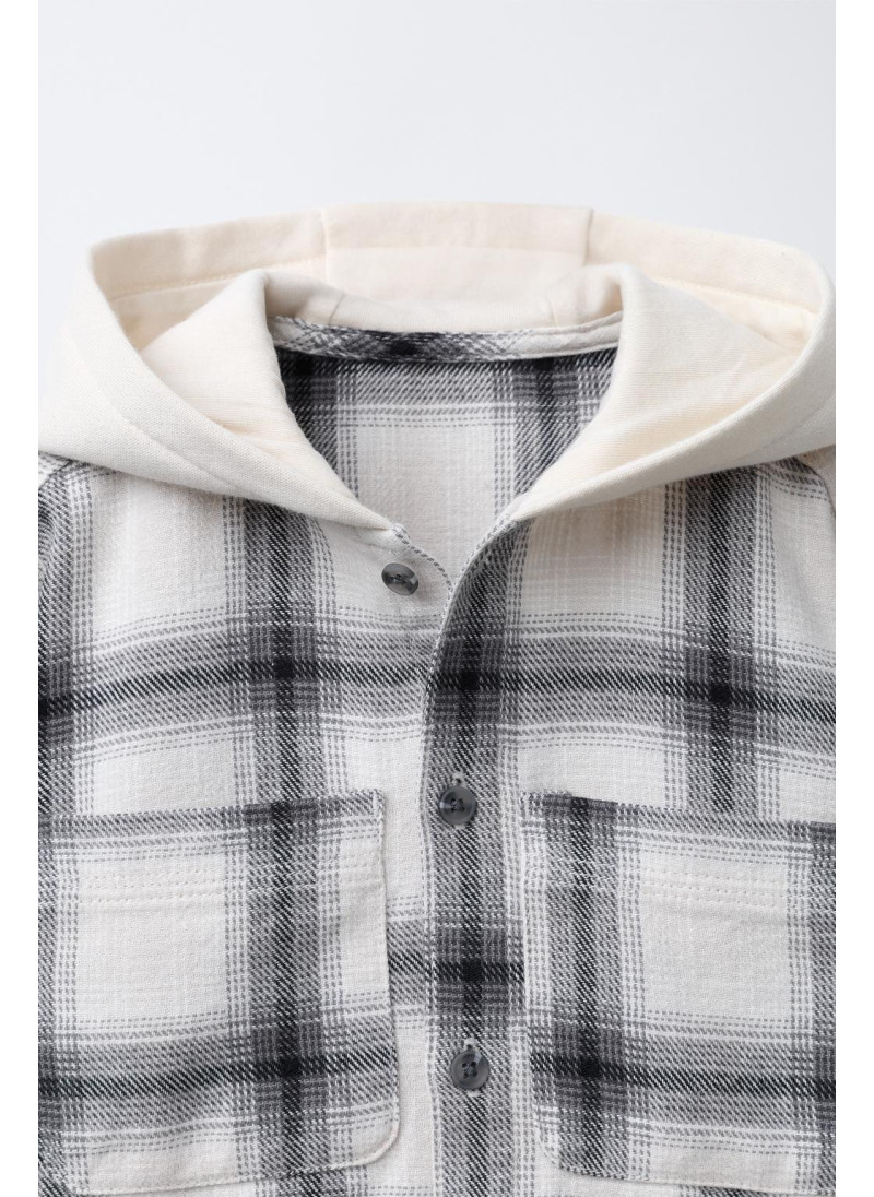 РУБАШКА В КЛЕТКУ С КАПЮШОНОМ ИЗ ФЛИСА