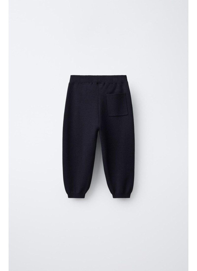 Трикотажные брюки с эластичным поясом и аппликацией переднего шнурка. Имеют карман на задней стороне.