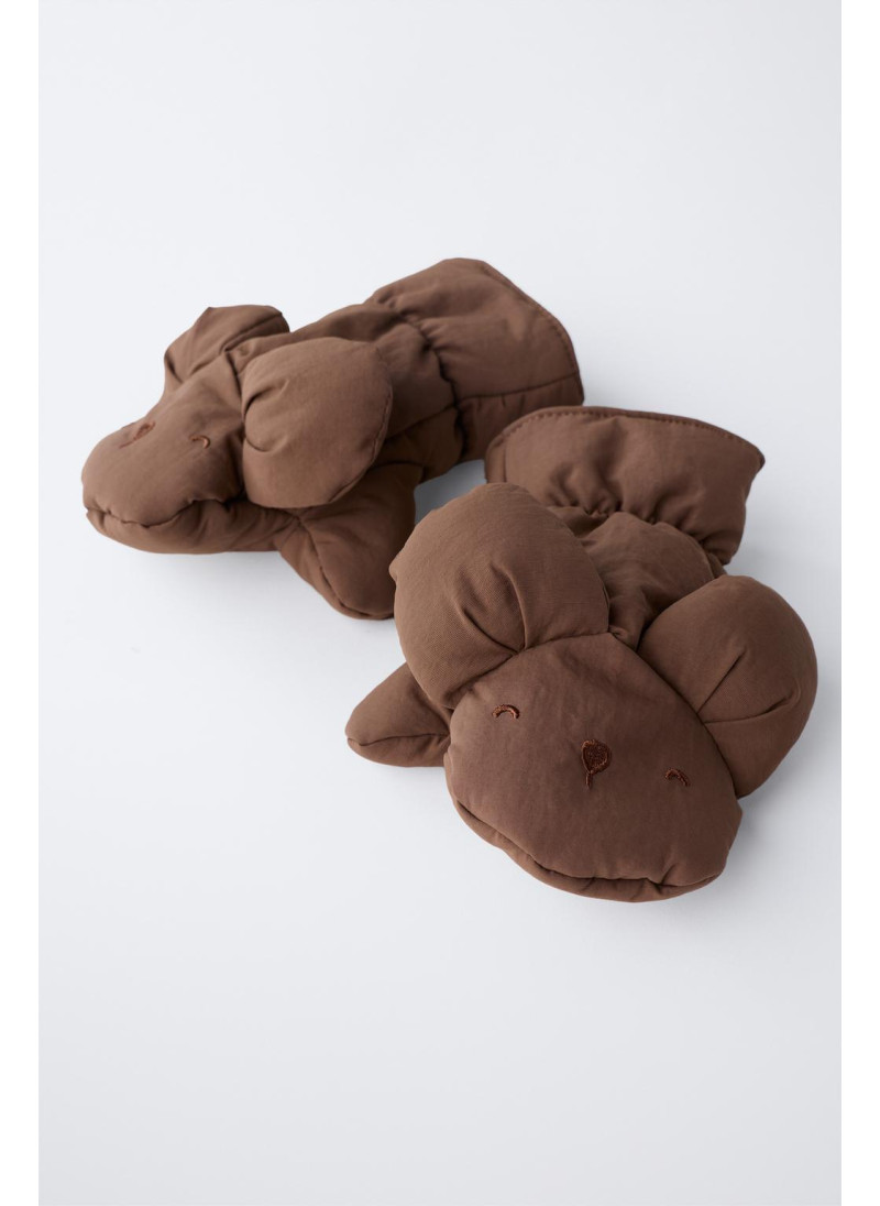 Нейлоновые варежки с эластичными деталями на запястье. Аппликации ушек и вышивка. Деталь крепления- клипса...