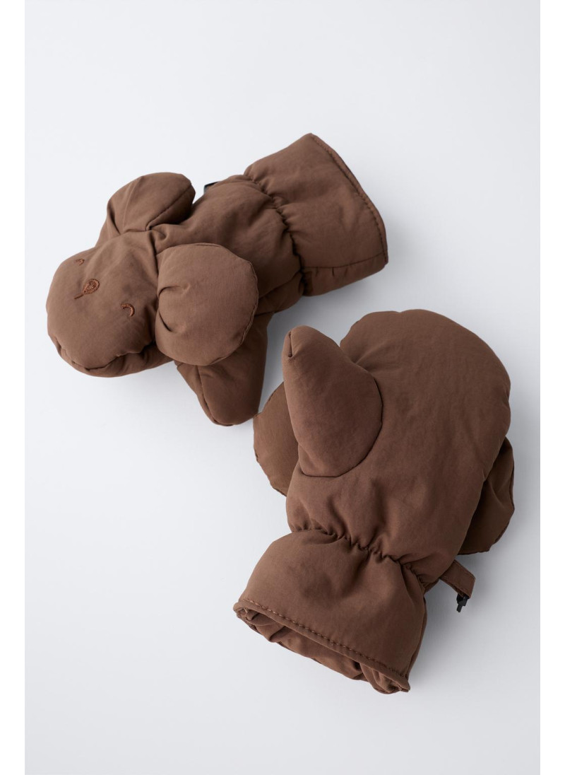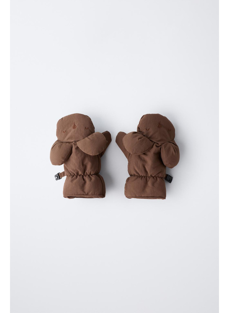 Нейлоновые варежки с эластичными деталями на запястье. Аппликации ушек и вышивка. Деталь крепления- клипса.