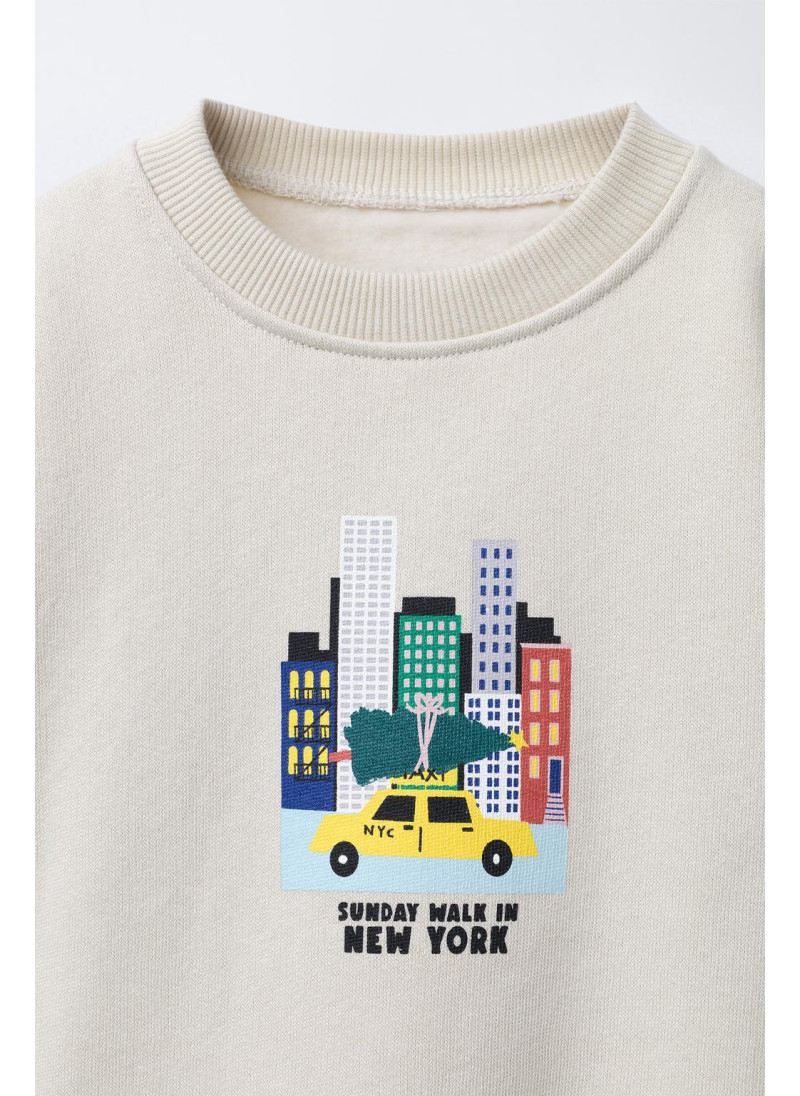 Длиннорукавный свитшот на круглой горловине. Ребристые манжеты. Принт Нью-Йорк на передней и задней стороне. Теплый, мягкий материал с начесом внутри. Ткань на 80% состоит из хлопка.