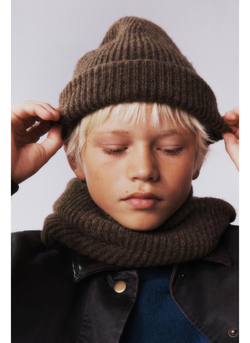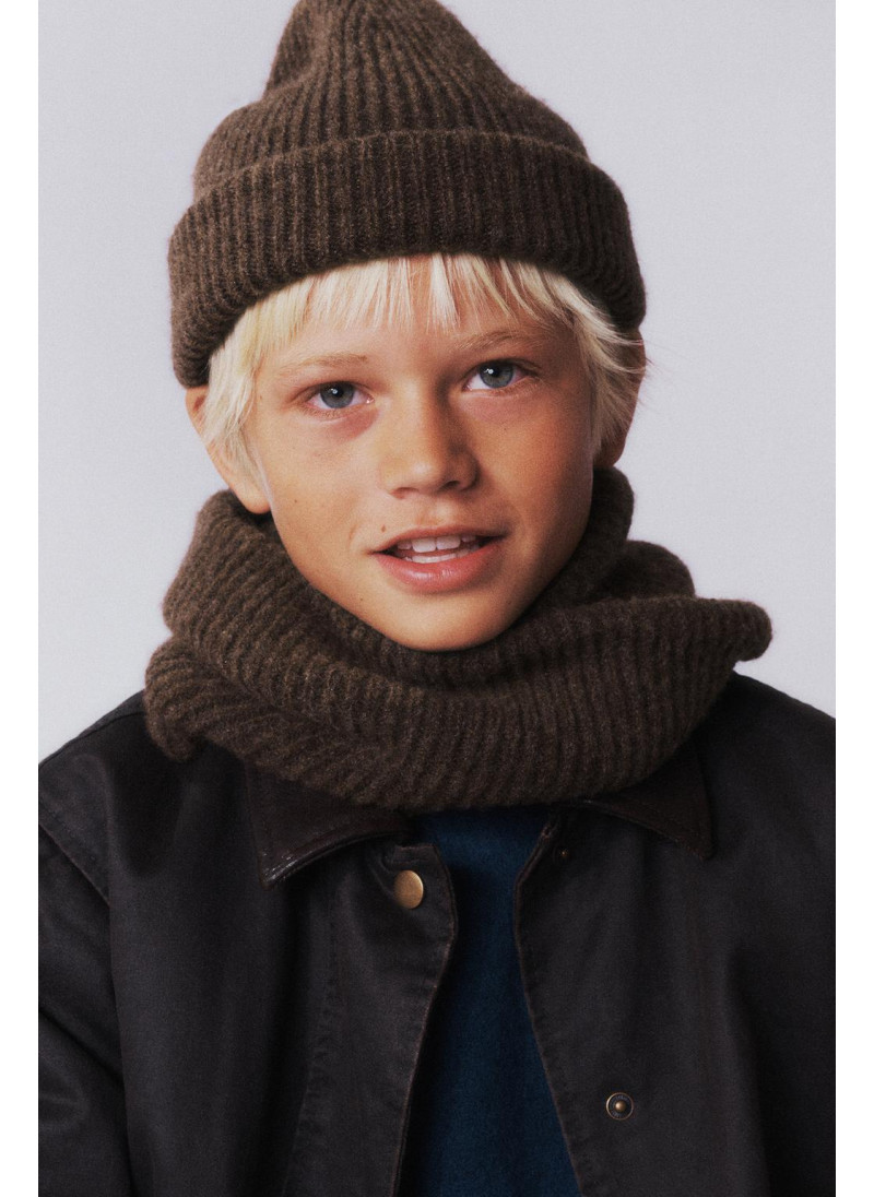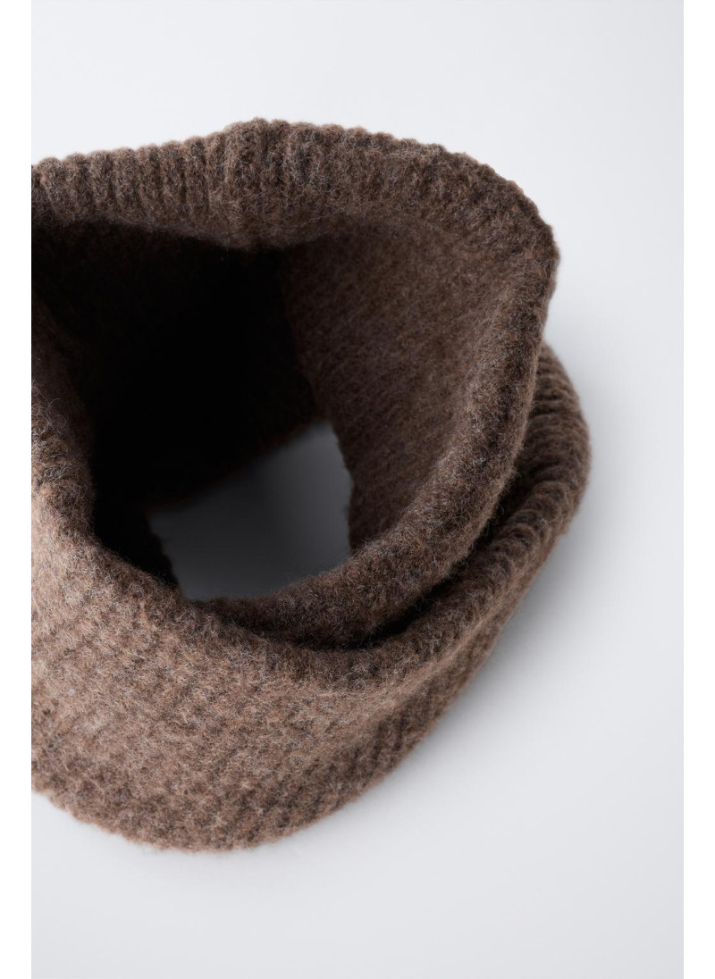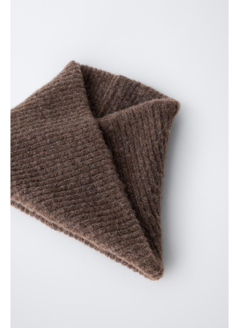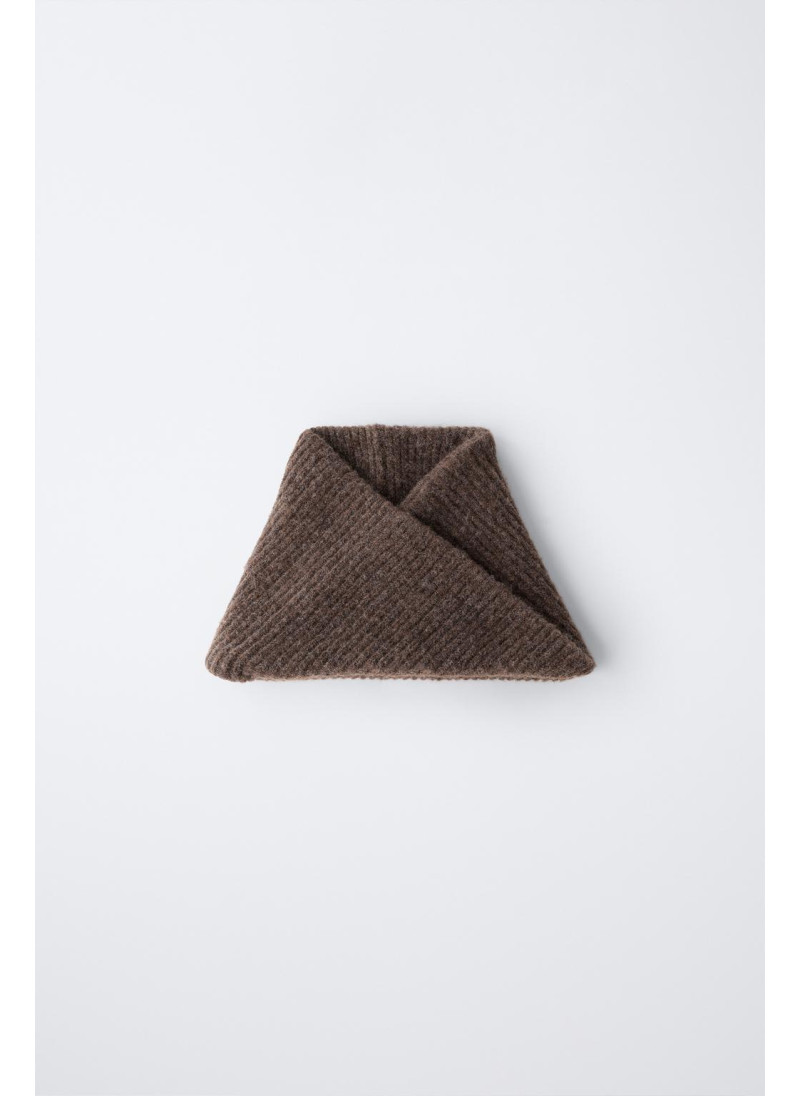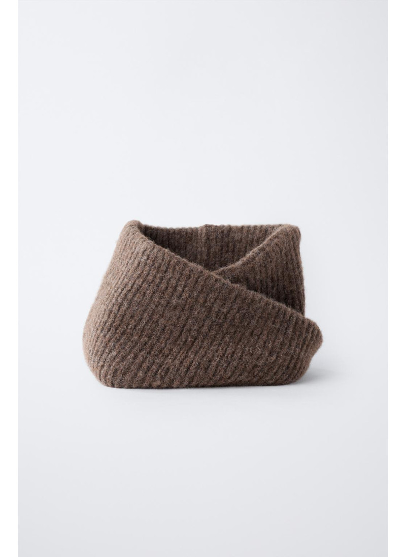 Вязанный снуд с перекрестным узором спереди.