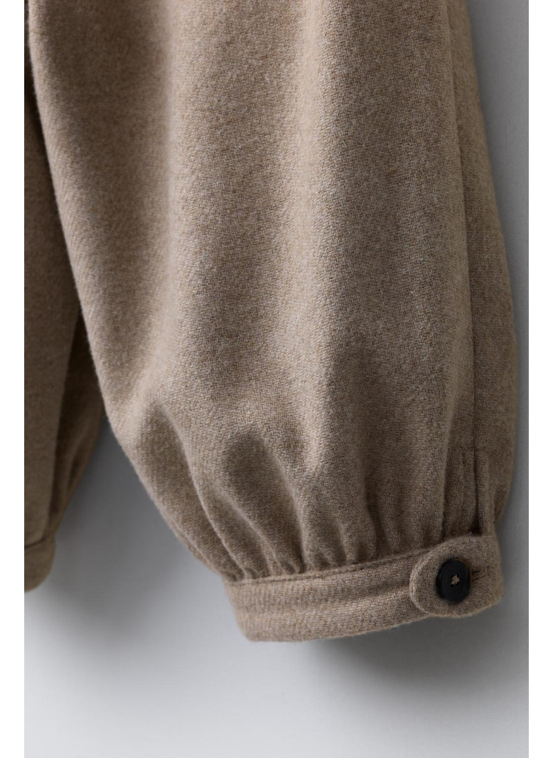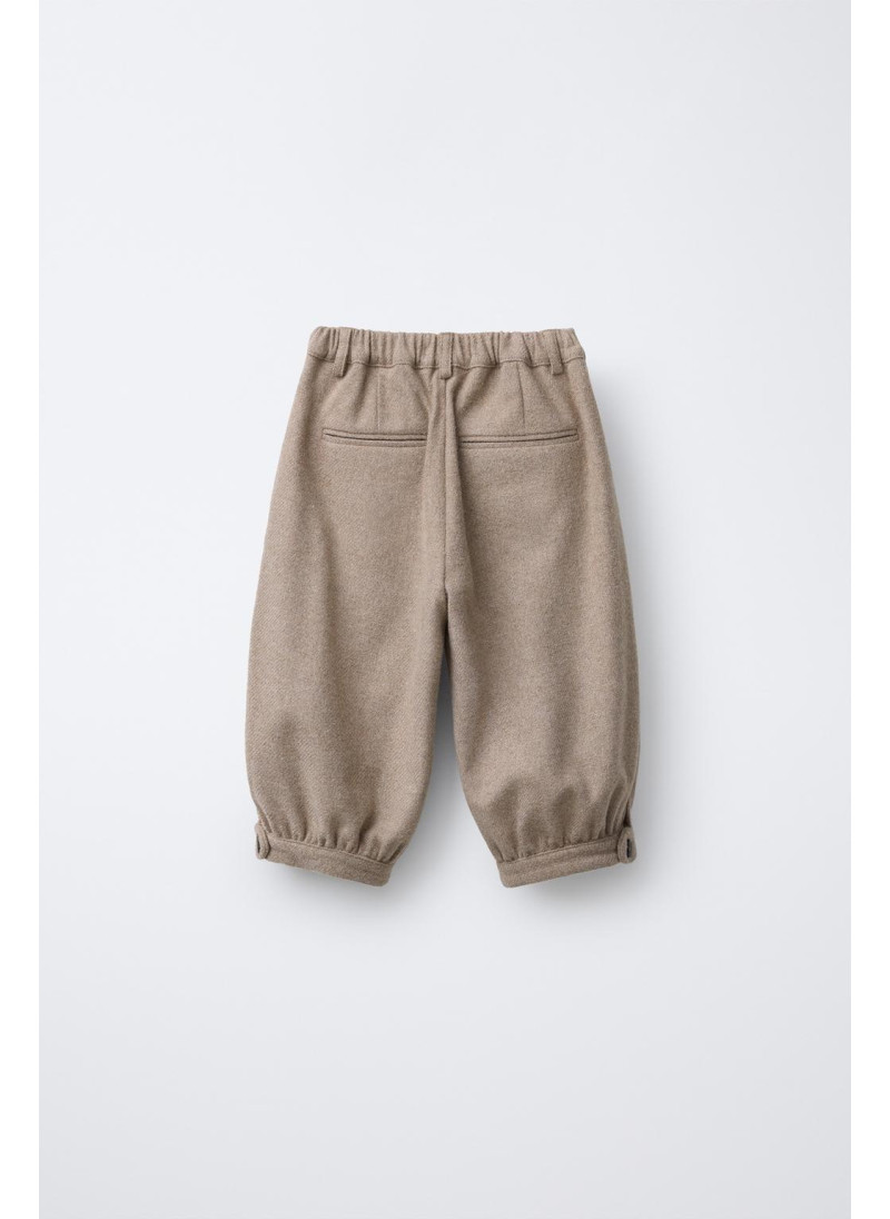 Брюки-бомбачи с эластичным поясом и застежкой на пуговицу спереди. Низ с застежкой на пуговицу. Передние карманы и прорезной карман сзади. Ткань содержит 29% шерсти.