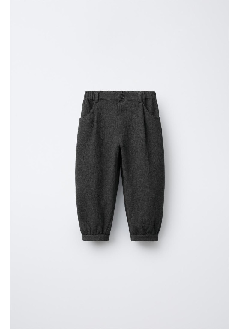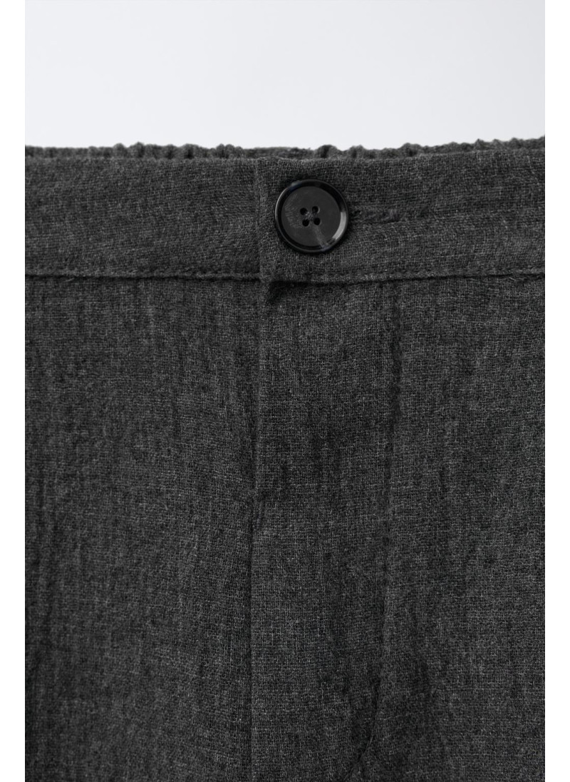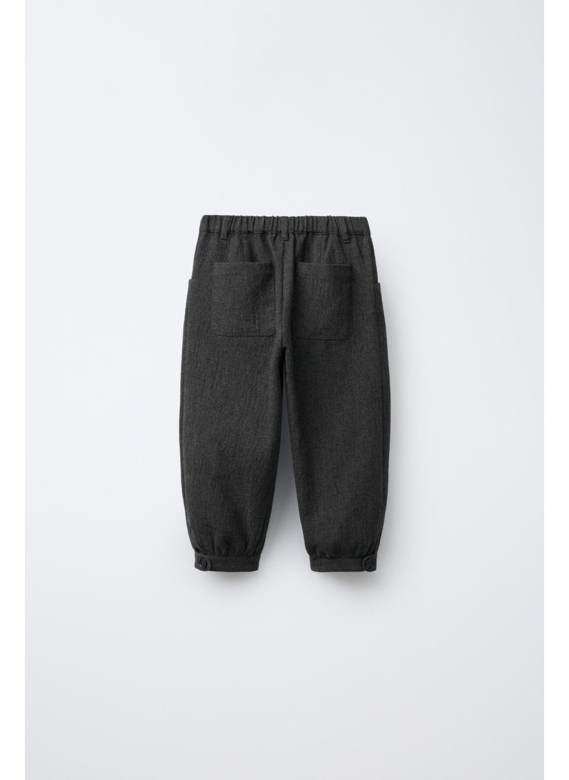 Брюки с возможностью регулировки внутренней линии талии, застежка спереди на пуговицу, передние карманы и задние накладные карманы. Имеют передние защипы и манжеты с боковой застежкой на пуговицу.