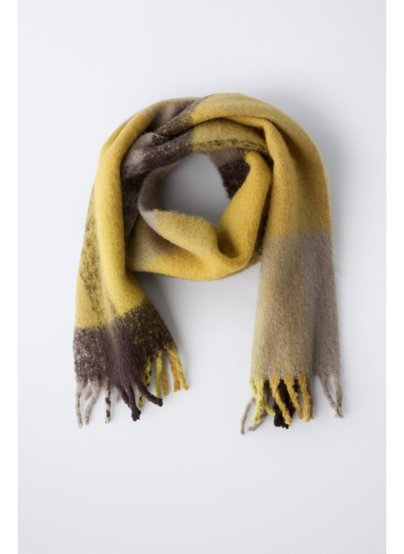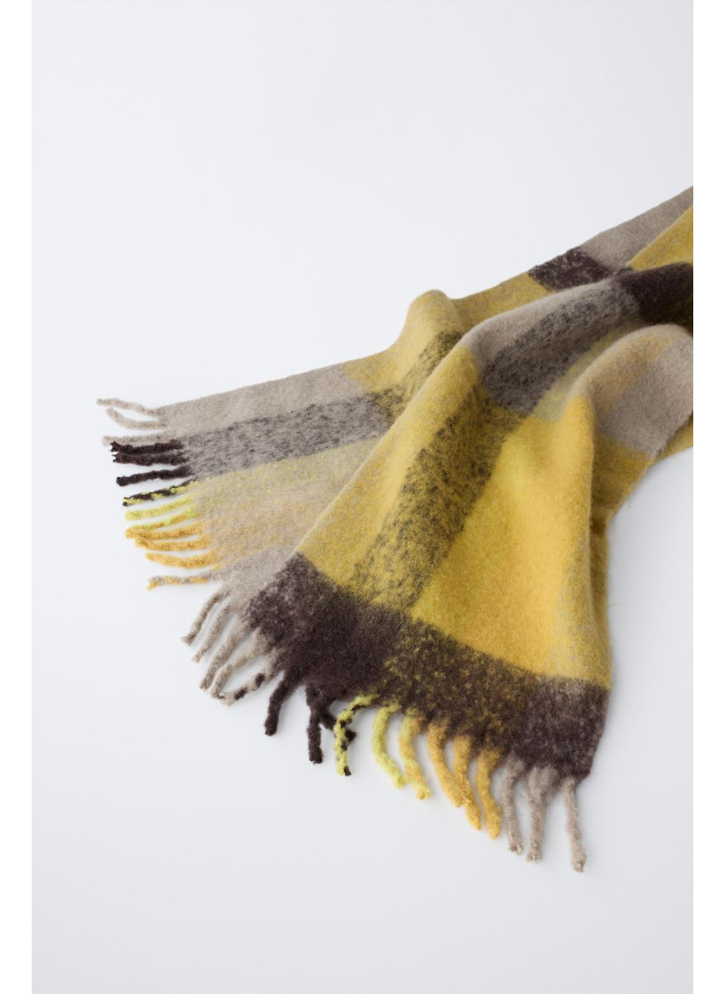 Большой шарф с клетчатым принтом. Отделка бахромой. Ткань содержит 11% шерсти.