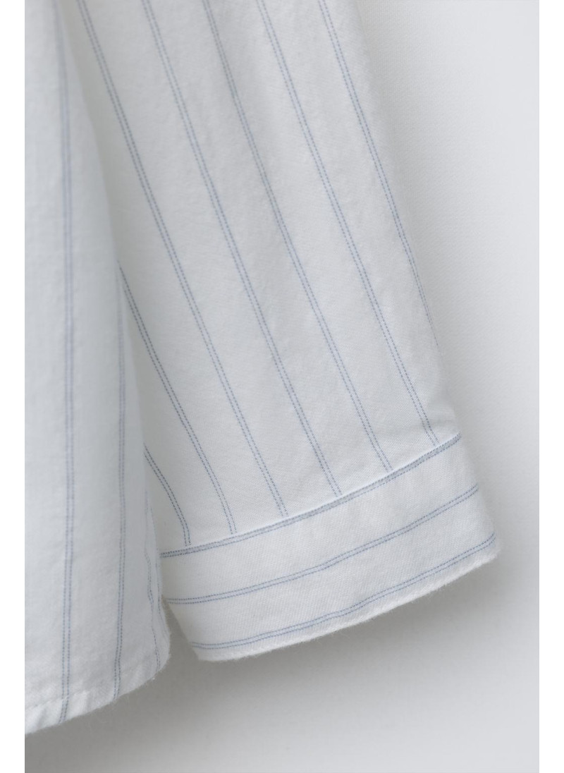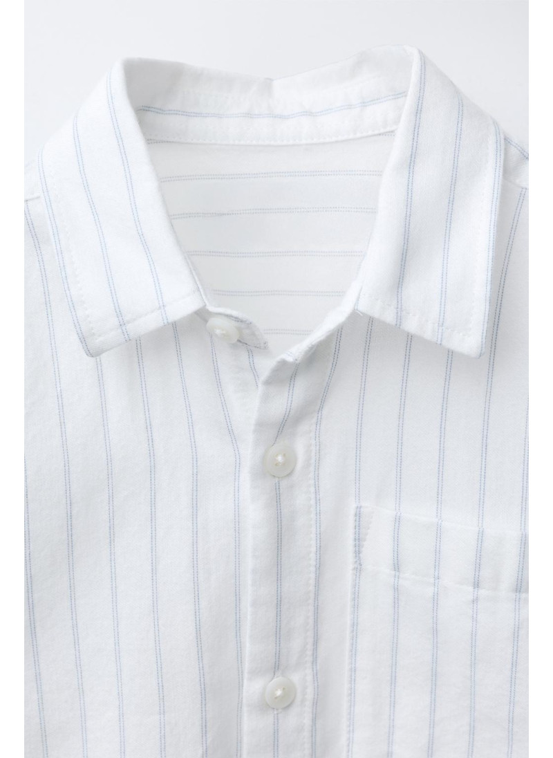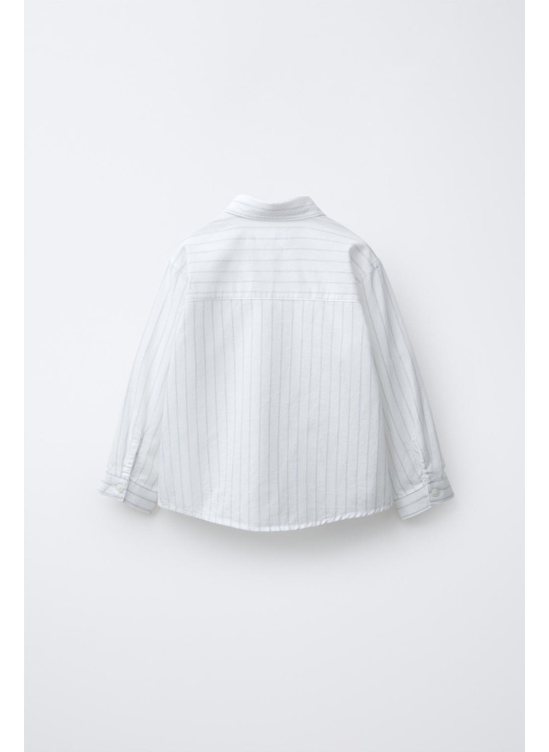 Теплая текстурированная рубашка с воротником-рубашкой и длинными рукавами. Застежка на пуговицы спереди. Карман на груди. Принт в полоску.